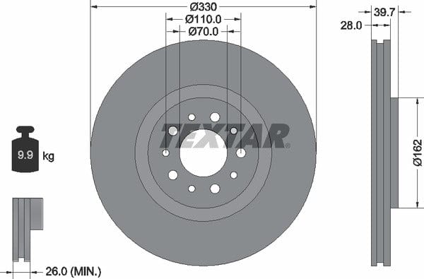 1 X Front Coated Brake Disc Pro Vented 92145103 Textar 330 mm Diameter