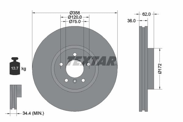1 X Front Coated Brake Disc Pro Vented 92146203 Textar 356 mm Diameter