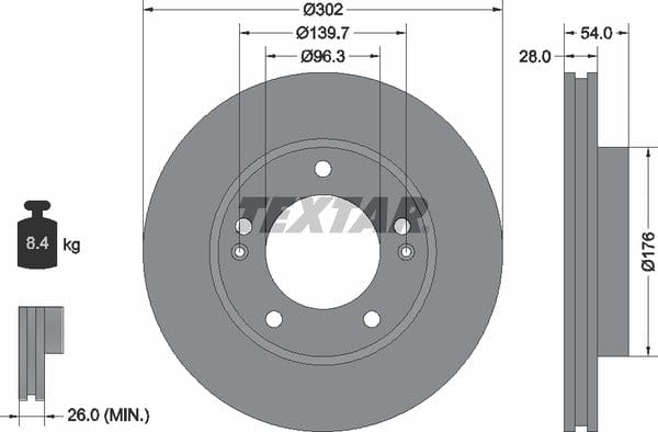 1 X Front Coated Brake Disc Pro Vented 92147303 Textar 302 mm Diameter