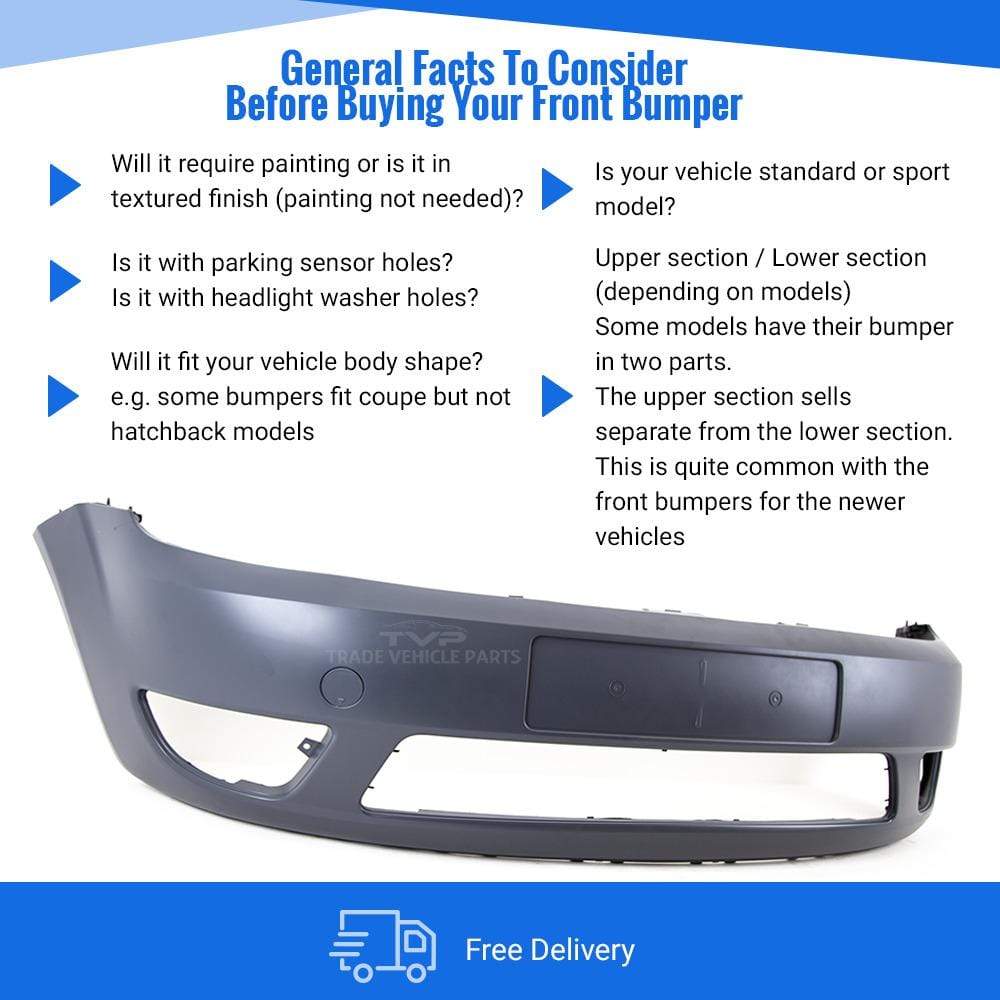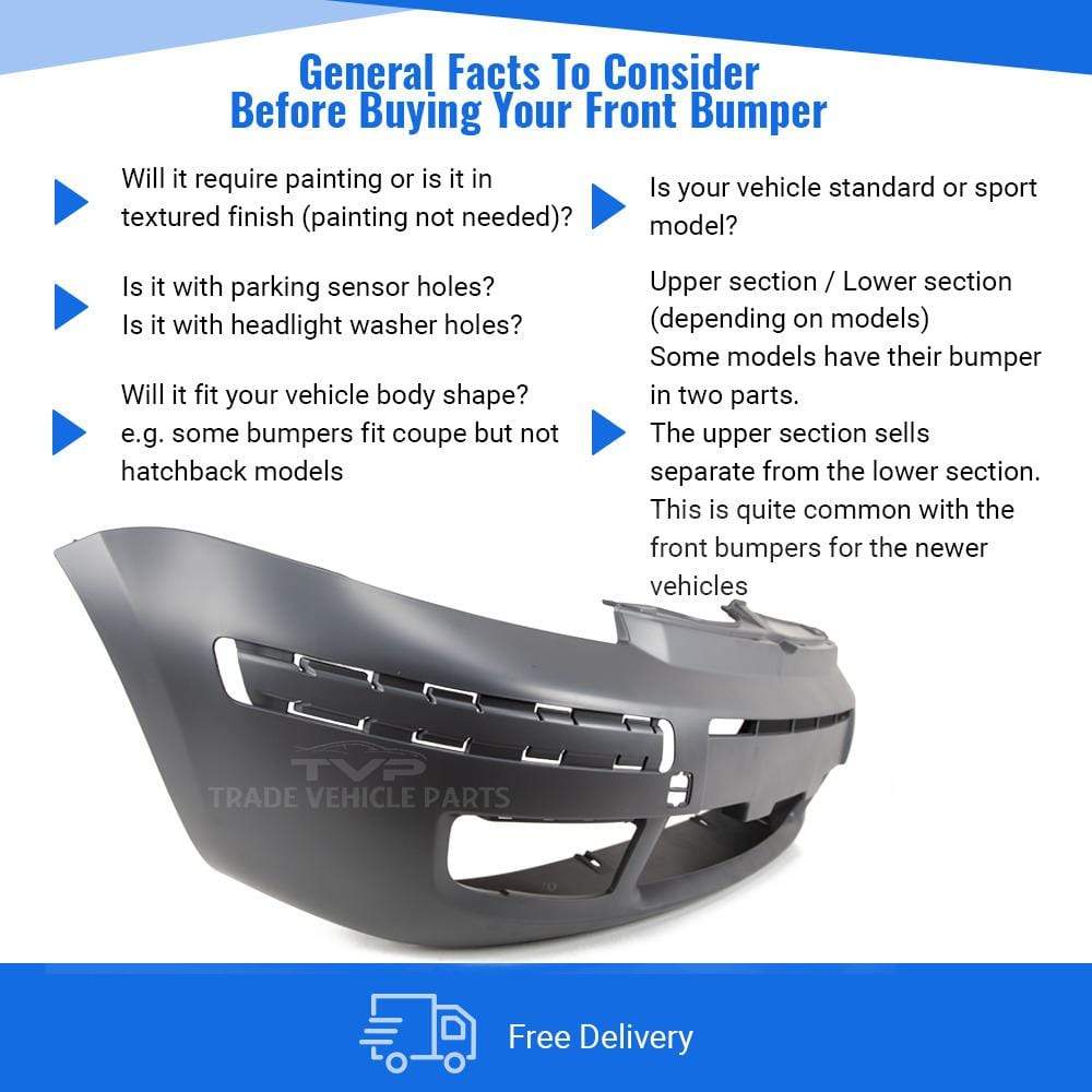We stock durable front and rear car bumpers, including all associated mounting brackets and hardware. These are insurance-approved replacement units that guarantee a first-time fit for structural integrity. Enter your reg to view only the bumpers compatible with your vehicle's year and trim.