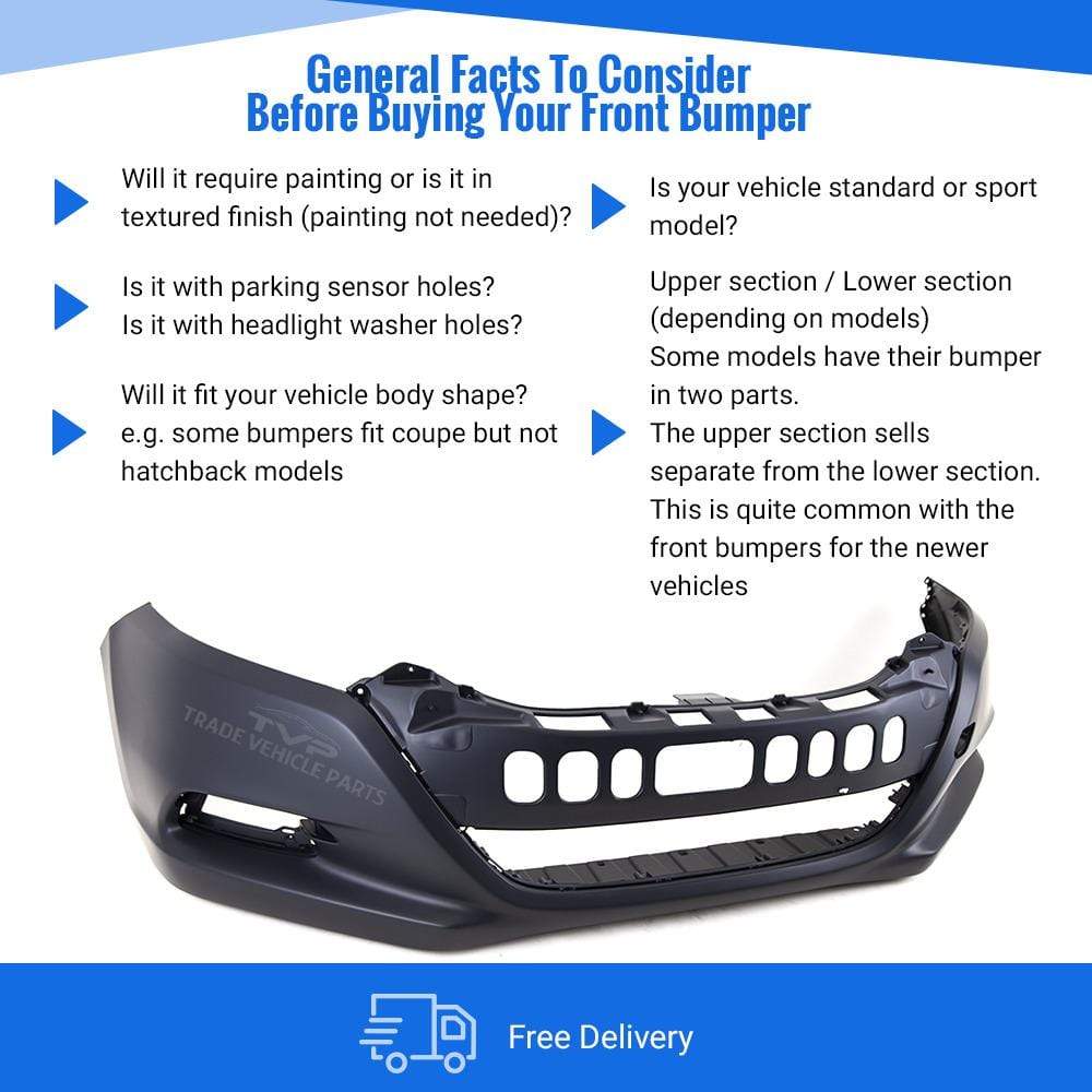 We stock durable front and rear car bumpers, including all associated mounting brackets and hardware. These are insurance-approved replacement units that guarantee a first-time fit for structural integrity. Enter your reg to view only the bumpers compatible with your vehicle's year and trim.