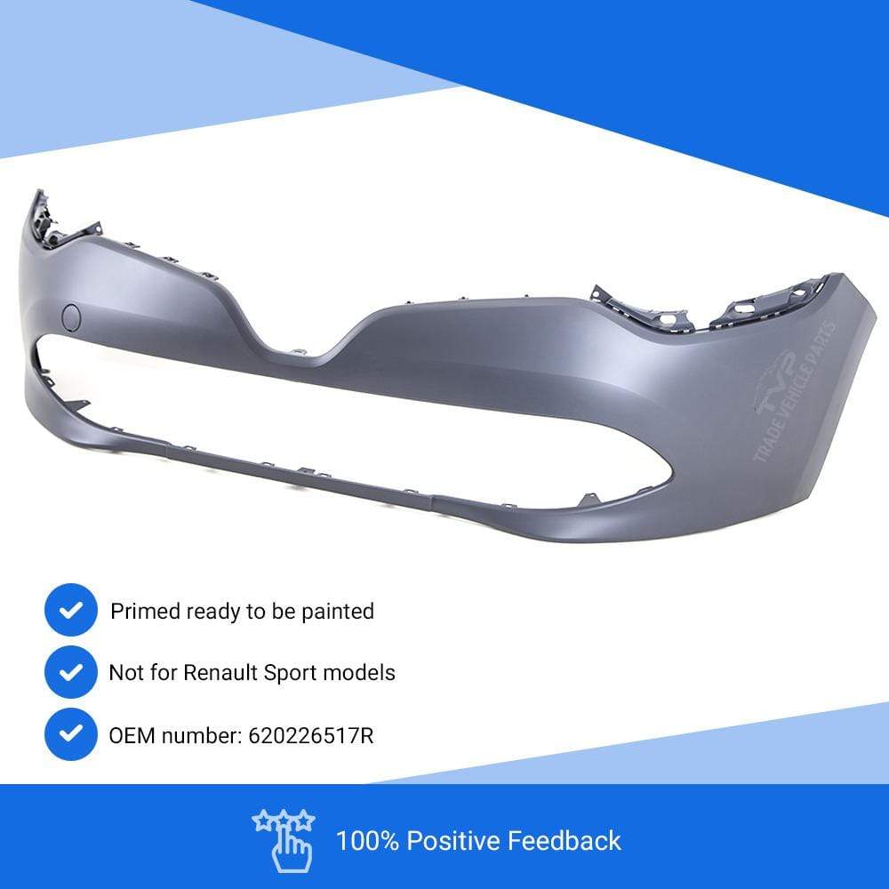 Fits Renault Clio 2013-2016 Front Bumper Primed No Pdc Or Washer Holes
