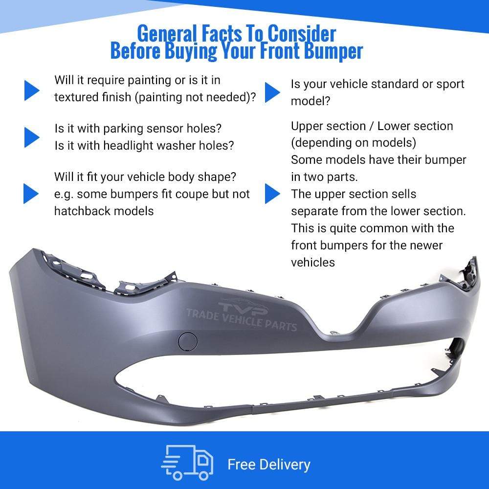 We stock durable front and rear car bumpers, including all associated mounting brackets and hardware. These are insurance-approved replacement units that guarantee a first-time fit for structural integrity. Enter your reg to view only the bumpers compatible with your vehicle's year and trim.