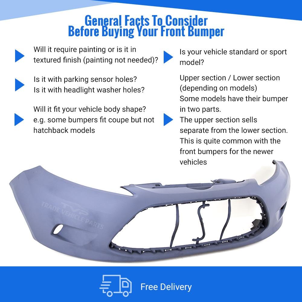 Ford Fiesta 2008-2012 Front Bumper Primed No Fog Holes No Pdc Holes