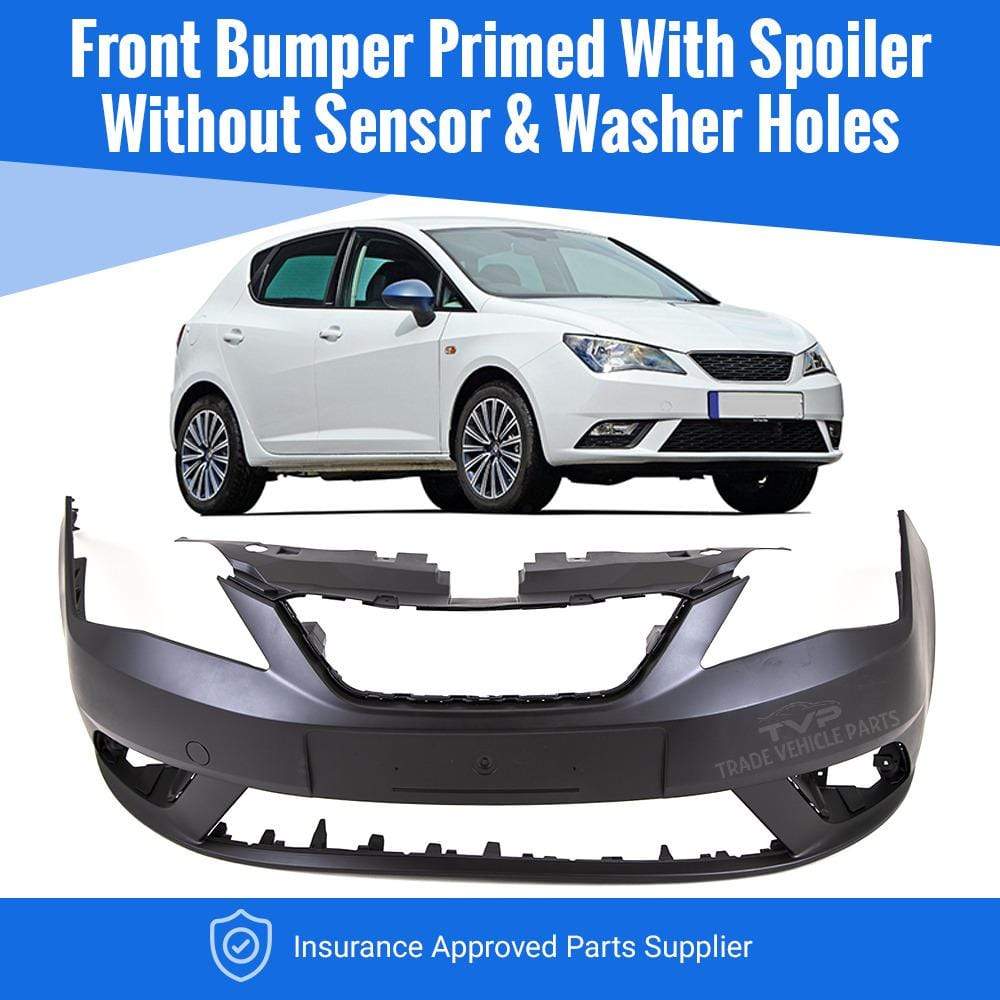 Fits Seat Ibiza 2012-2015 Front Bumper Primed With Spoiler No Sensor / Washer Holes