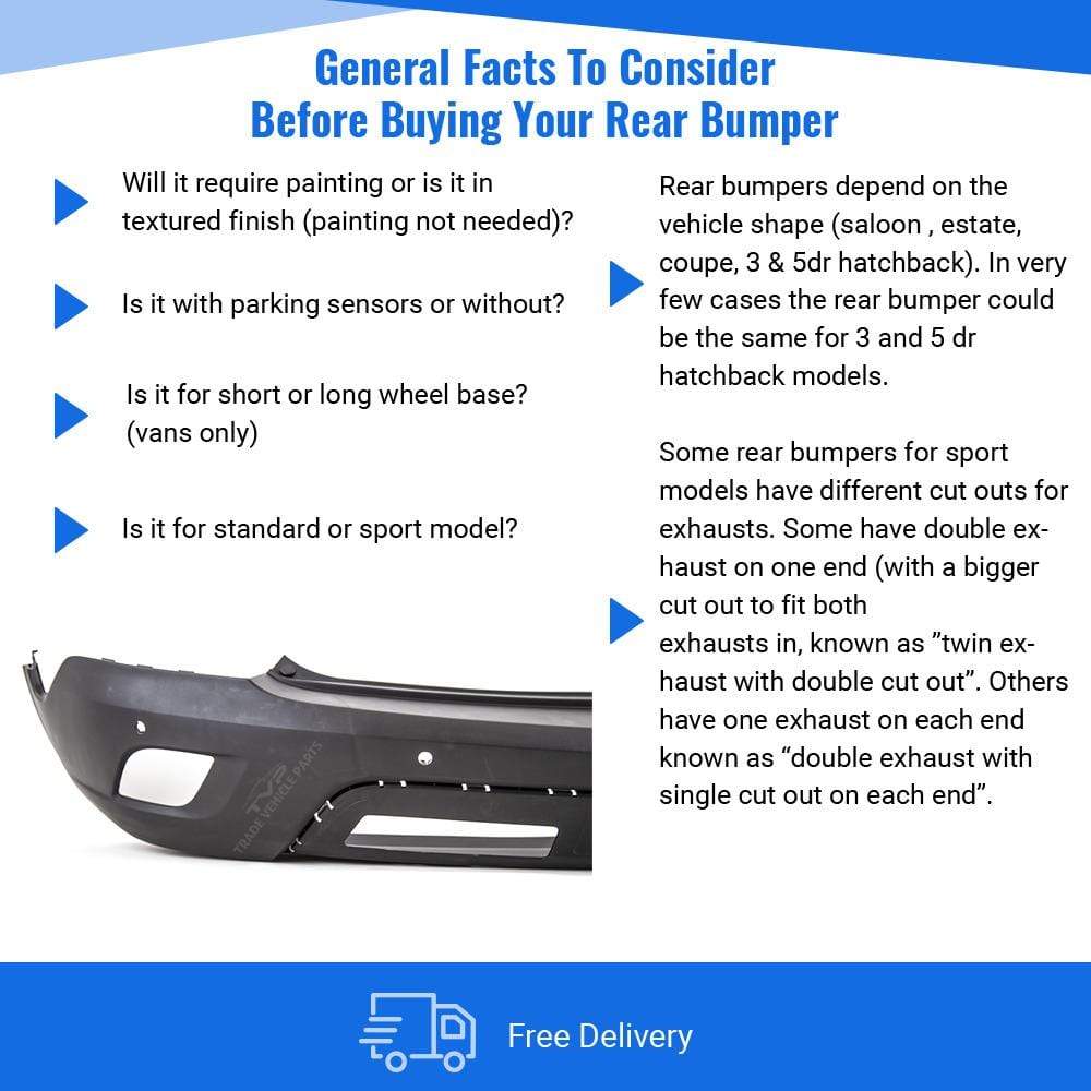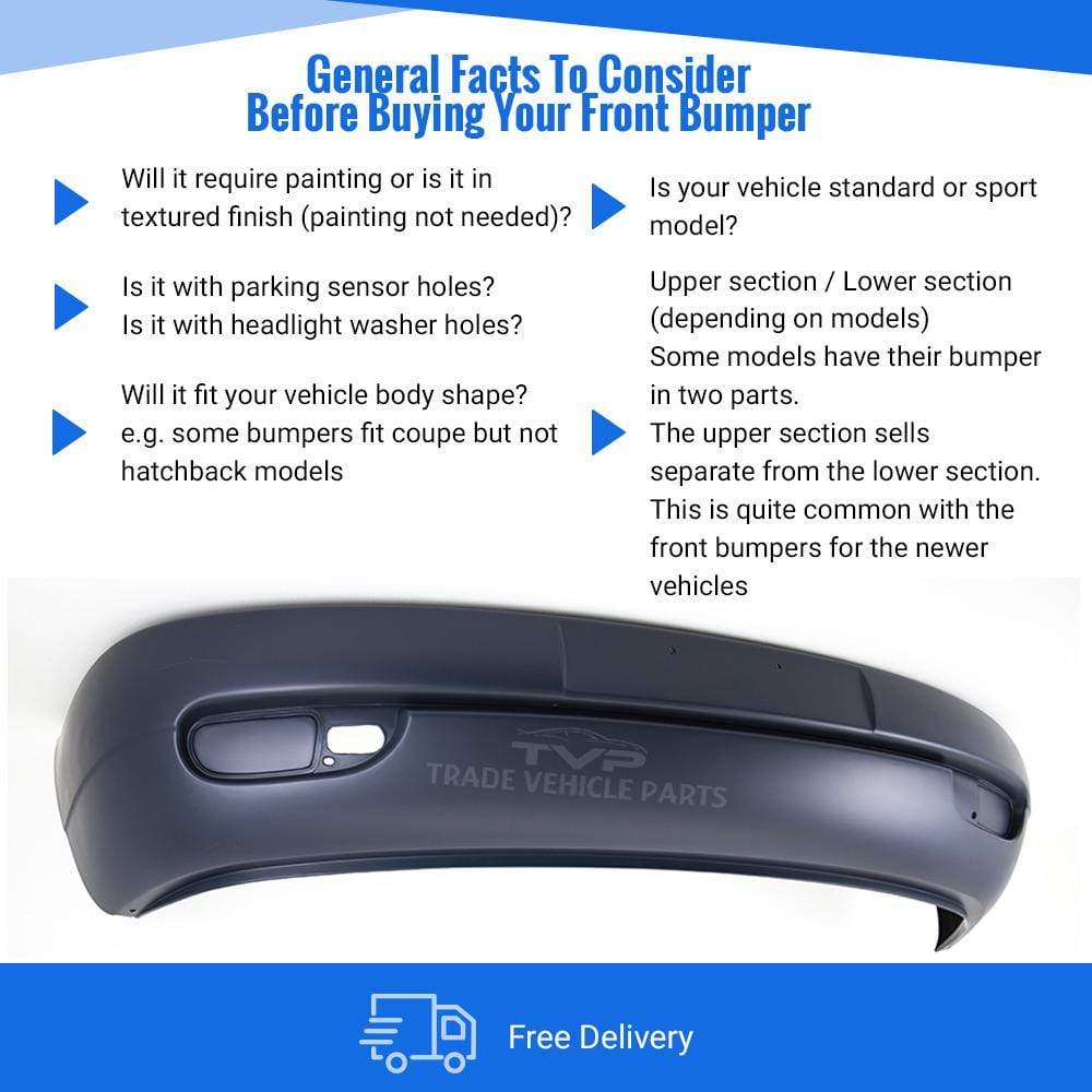 We stock durable front and rear car bumpers, including all associated mounting brackets and hardware. These are insurance-approved replacement units that guarantee a first-time fit for structural integrity. Enter your reg to view only the bumpers compatible with your vehicle's year and trim.