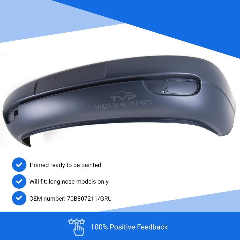 Fits VW Transporter T4 Caravelle 1997-2004 Front Bumper Primed No Fog Hole Long Nose