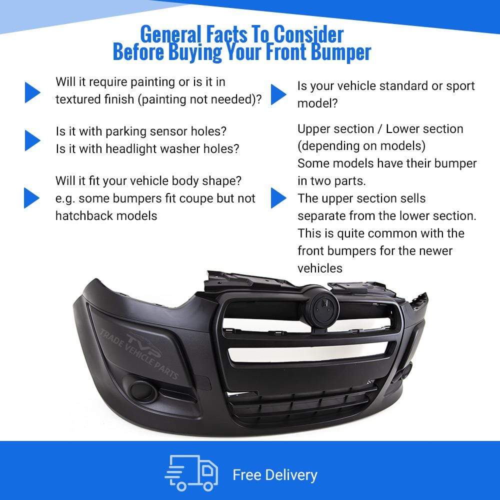 Fits Fiat Doblo 2010-2015 Front Bumper Textured No Fog Holes No Pdc Or Washer Holes