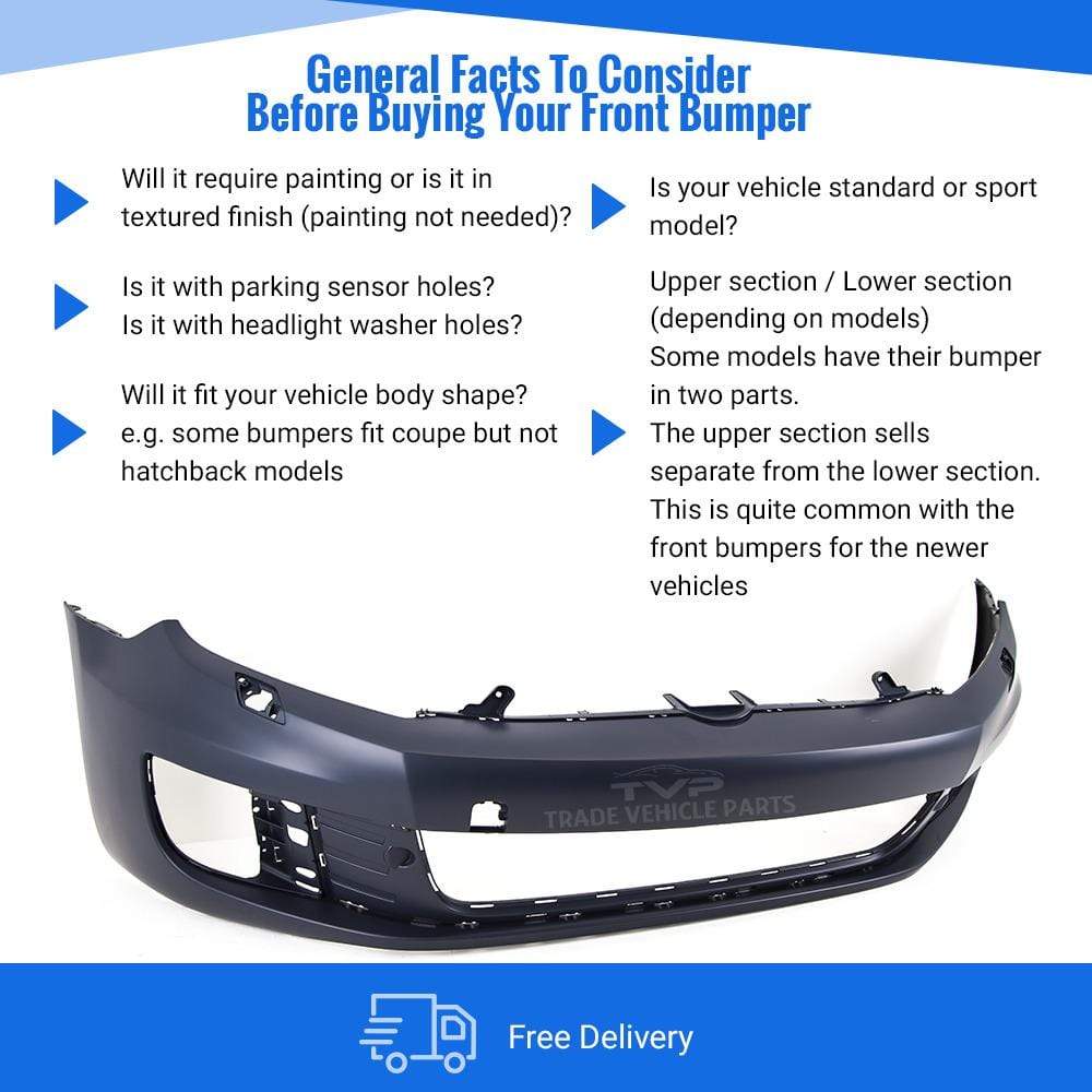 Fits VW Golf Mk6 Gti/Gtd 2009-2013 Front Bumper Primed With Washer Holes No Pdc Holes