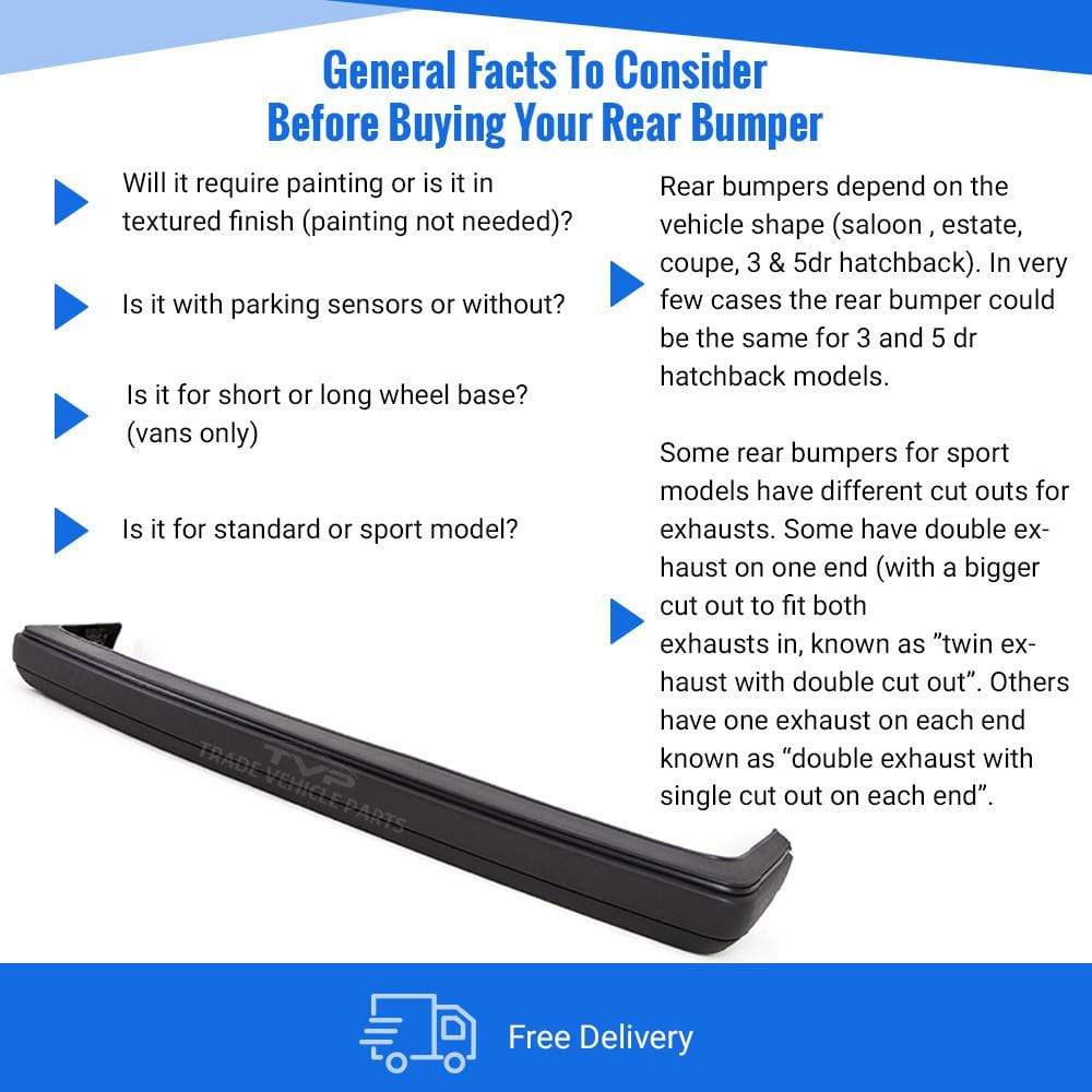 We stock durable front and rear car bumpers, including all associated mounting brackets and hardware. These are insurance-approved replacement units that guarantee a first-time fit for structural integrity. Enter your reg to view only the bumpers compatible with your vehicle's year and trim.