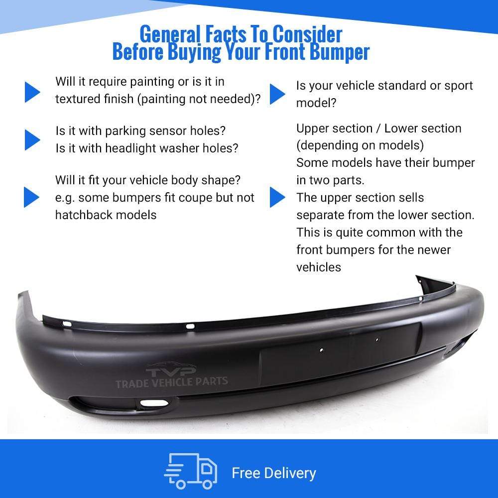 We stock durable front and rear car bumpers, including all associated mounting brackets and hardware. These are insurance-approved replacement units that guarantee a first-time fit for structural integrity. Enter your reg to view only the bumpers compatible with your vehicle's year and trim.