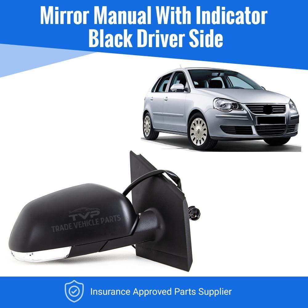 Fits VW Polo 2005-2009 Door Wing Mirror Manual With Indicator Black Driver Side