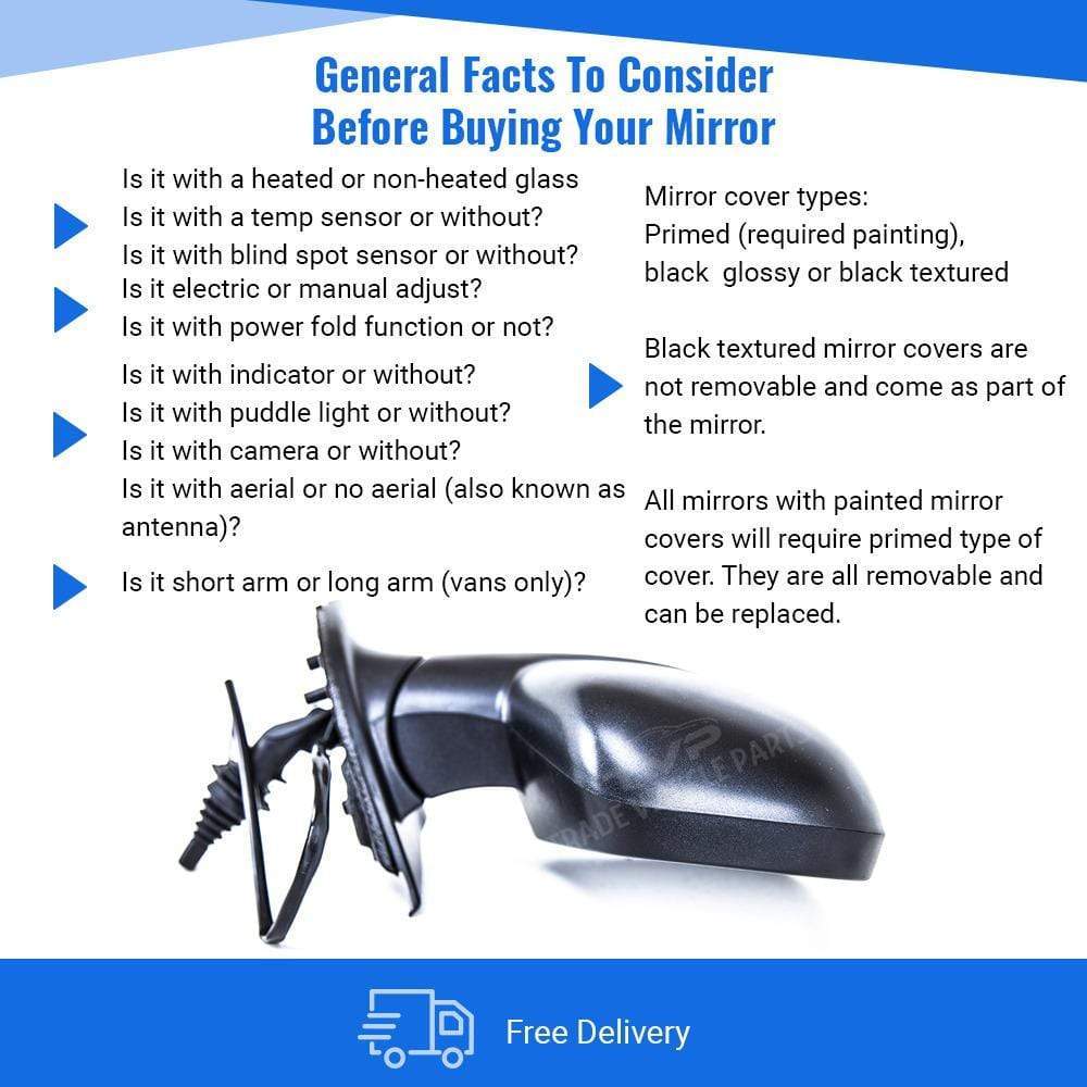 Fits Citroen C3 Picasso 2009-2017 Door Wing Mirror Electric Heated Powerfold Primed Cover Passenger Side