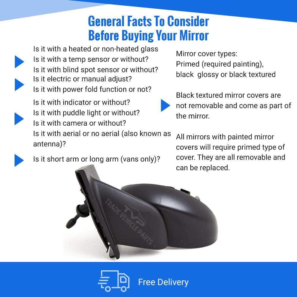 Citroen Berlingo 2012-2018 Door Wing Mirror E/H Power Fold Primed Driver Side