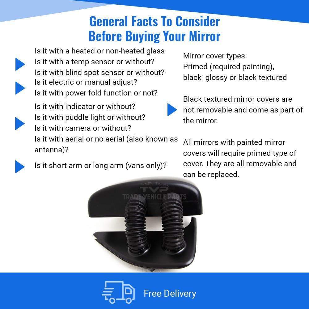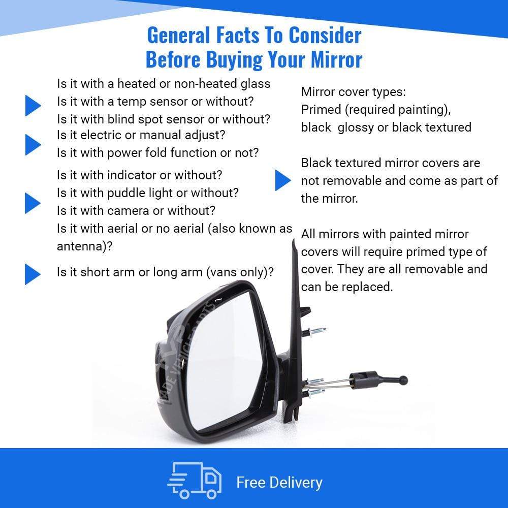 Fits Peugeot Boxer 1999-2006 Door Wing Mirror Electric Heated Long Arm Passenger Side