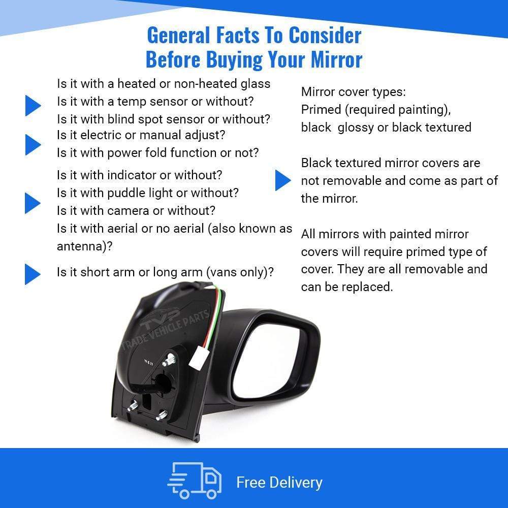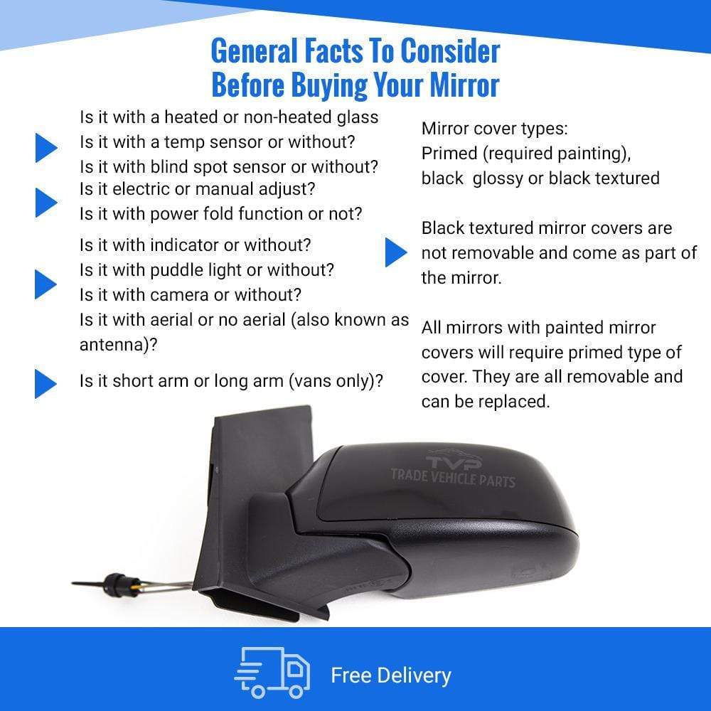 Ford Transit 2000-2014 Door Wing Mirror Electric Heated Black Short Arm Driver Side