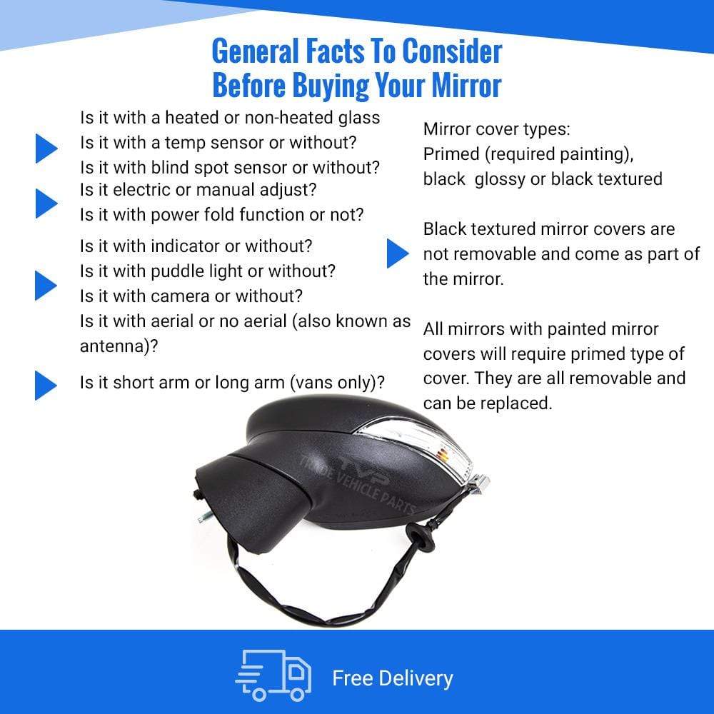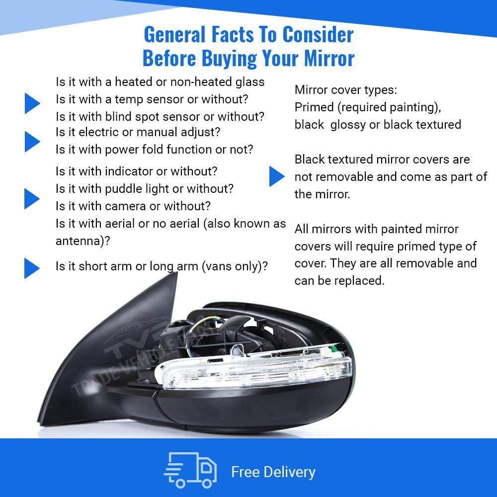 Fits VW Golf Mk6 2009-2012 Door Wing Mirror Electric Heated With Indicator, Primed Passenger Side