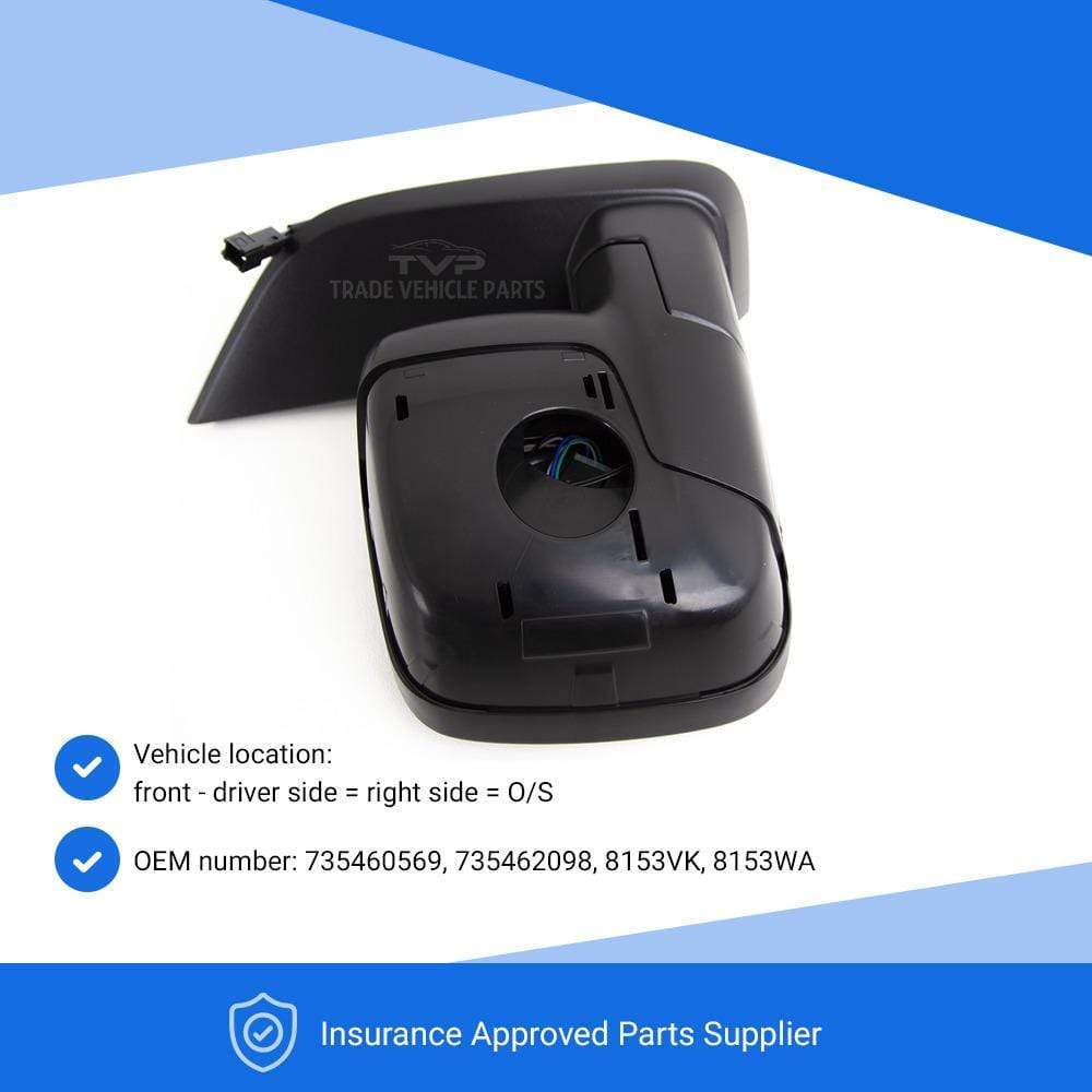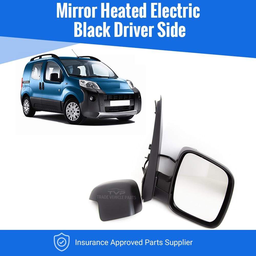 Fits Peugeot Bipper 2008- Door Wing Mirror Heated Electric Black Driver Side