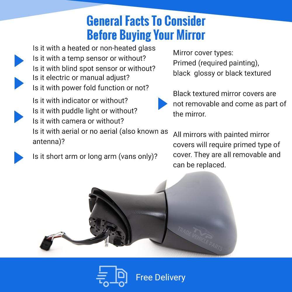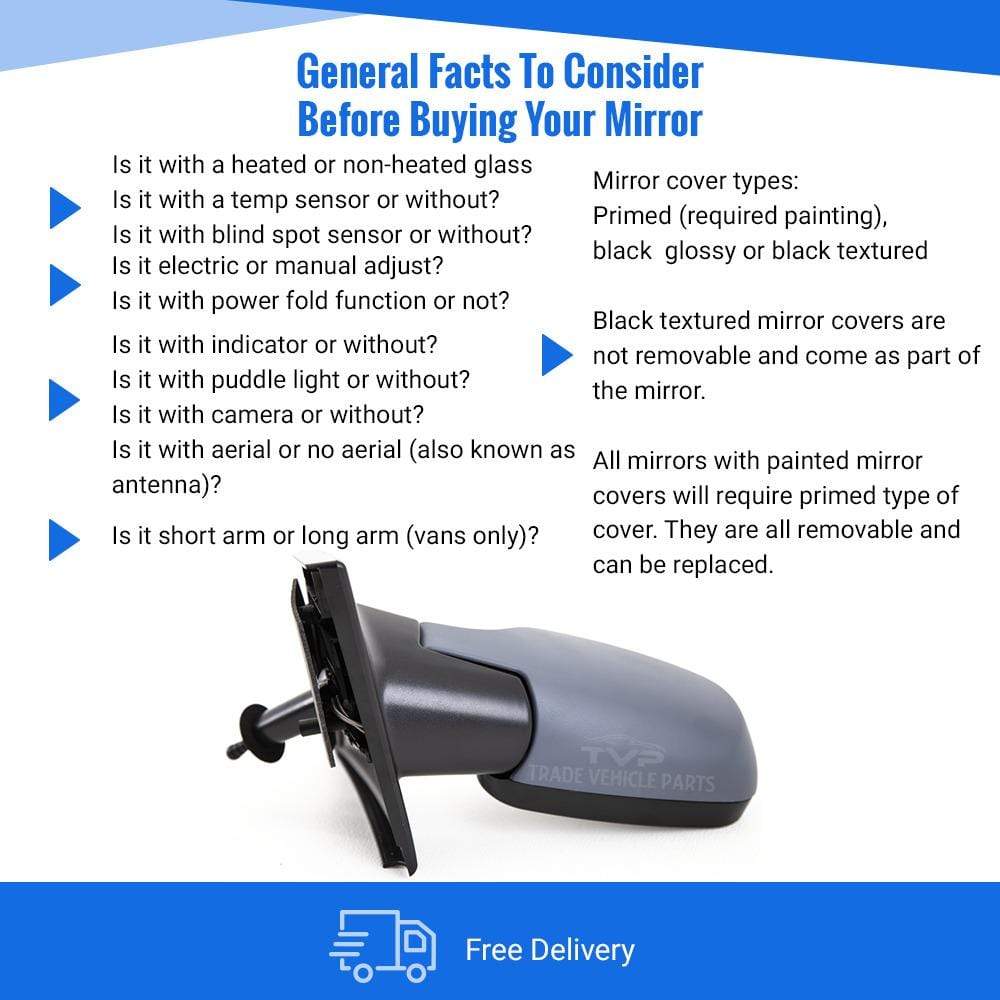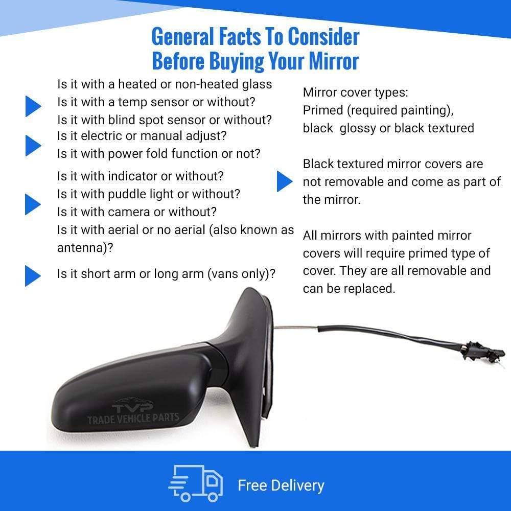 Fits Vauxhall Zafira 1999-2005 Door Wing Mirror Heated Electric Primed Passenger Side