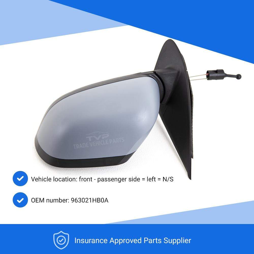 Fits Nissan Micra 2011-2017 Door Wing Mirror Electric Heated Primed Cover Passenger Side