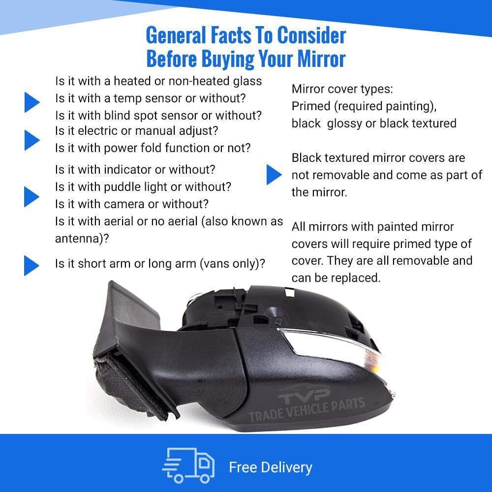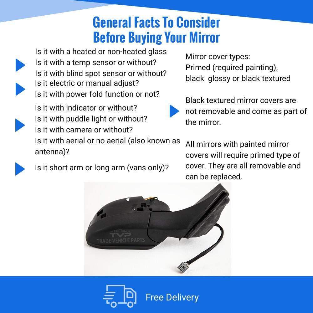 Fits Citroen C3 2010-2016 Door Wing Mirror Heated Electric Primed W/Ind Temp Sens Power Fold Chrome Base Driver Side