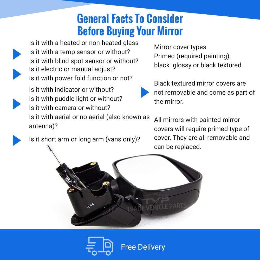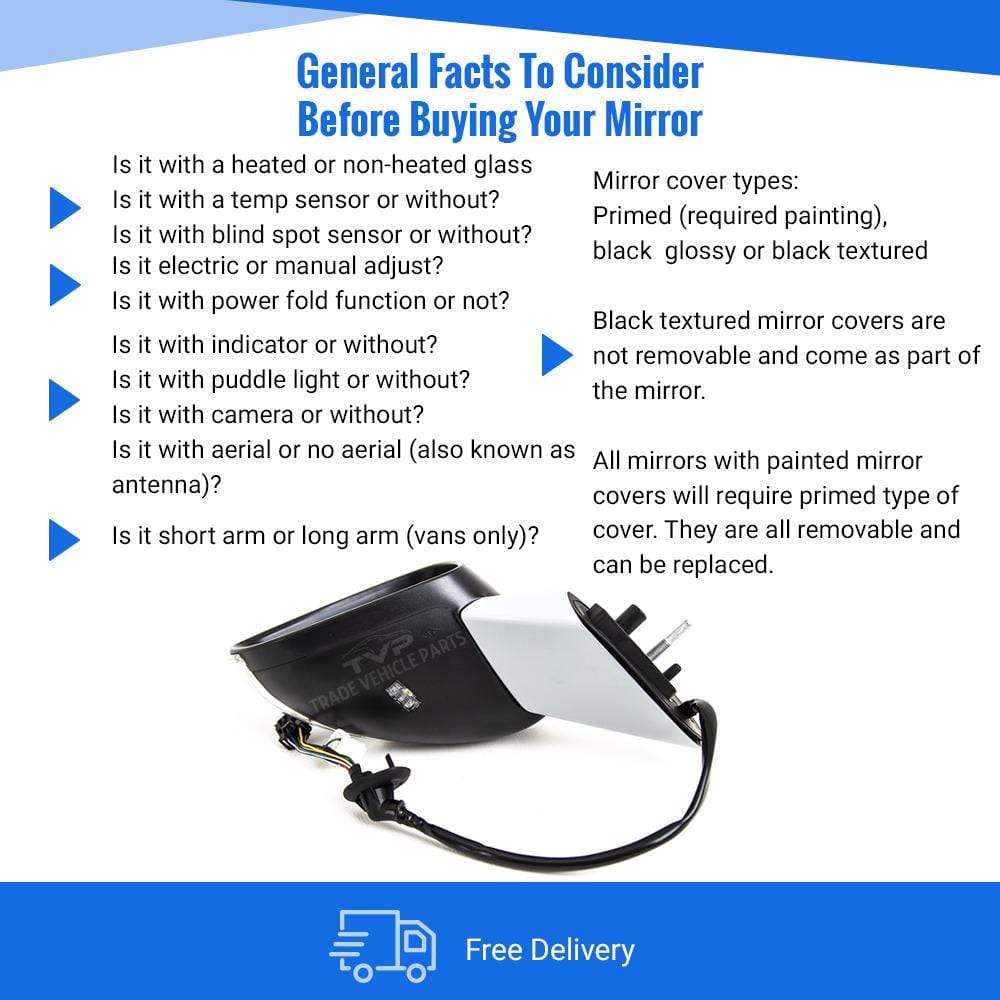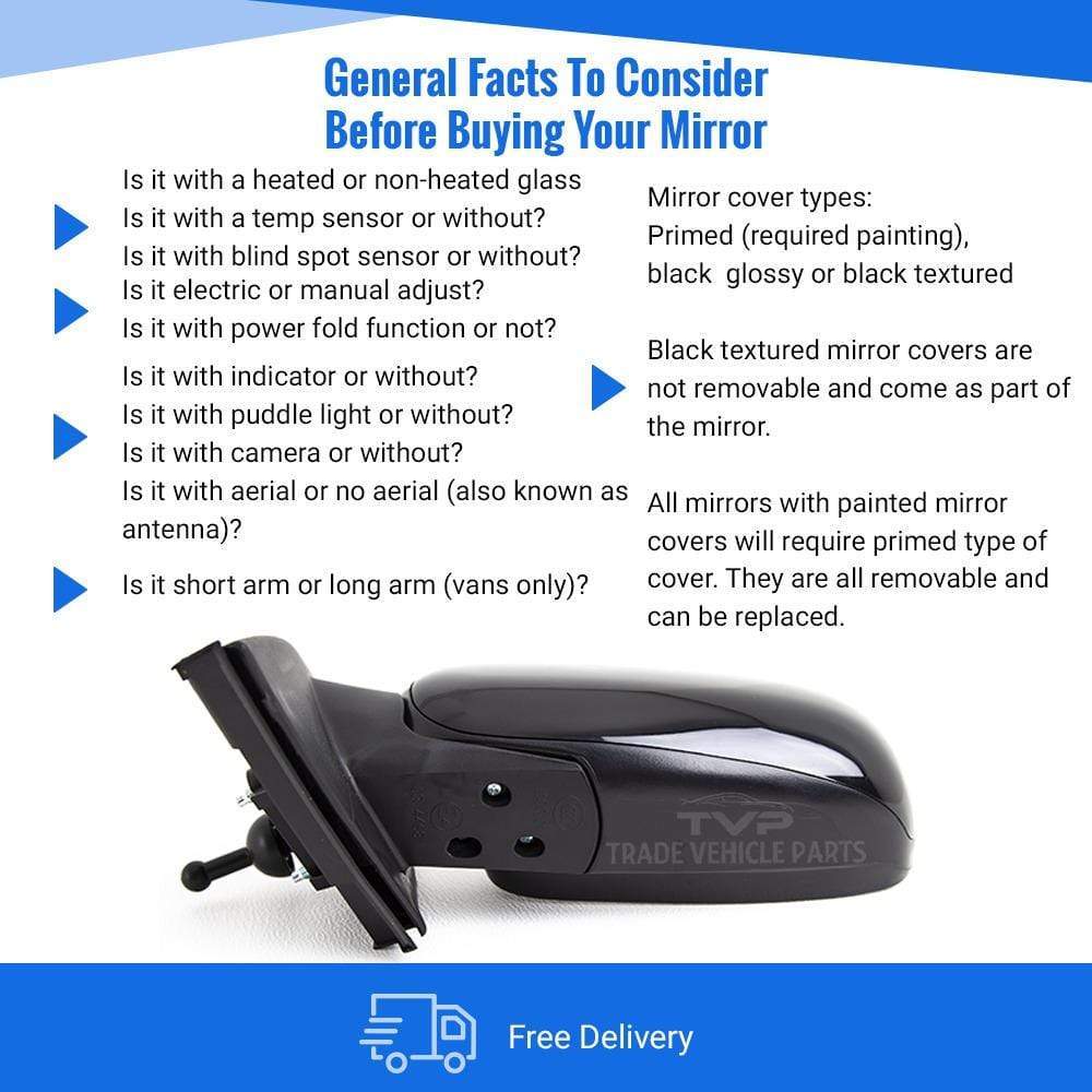 Fits VW Transporter 2010-2015 Door Wing Mirror Electric Heated Primed Driver Side