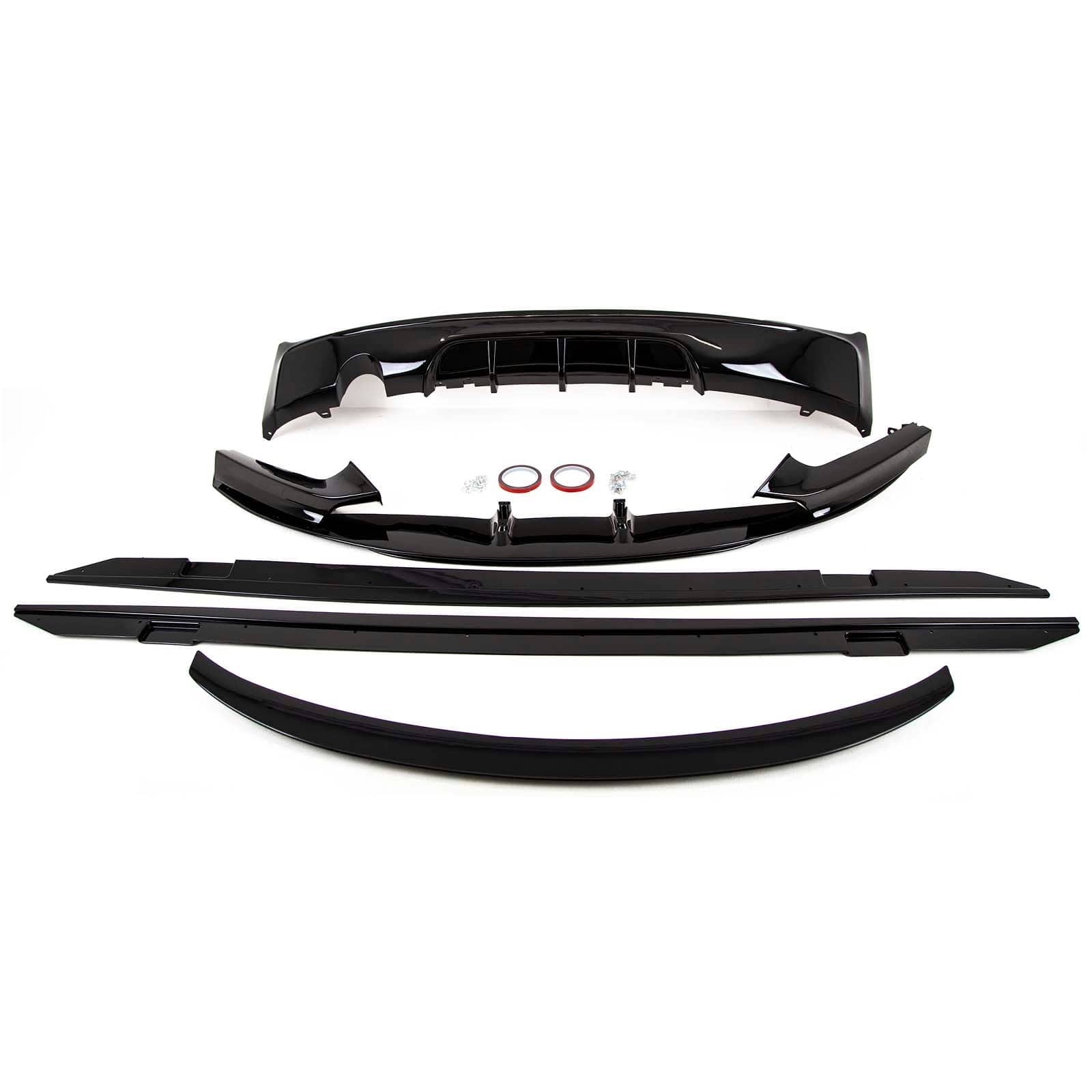 - Package includes- 1 x Front Splitter, 1 x Pair of Side Skirts Extension Blades, 1 x Rear Diffuser Single Exhaust, 1 x Boot Spoiler