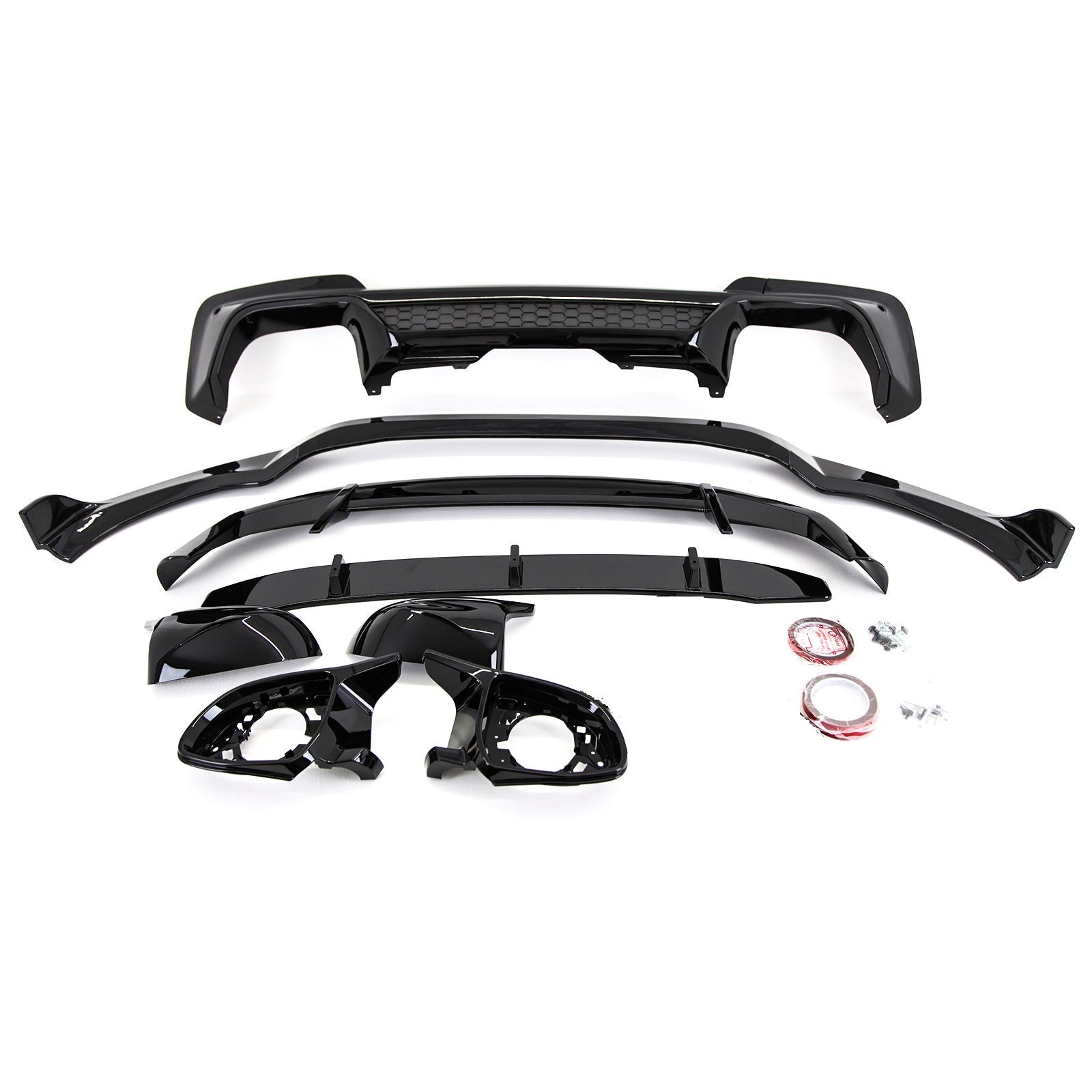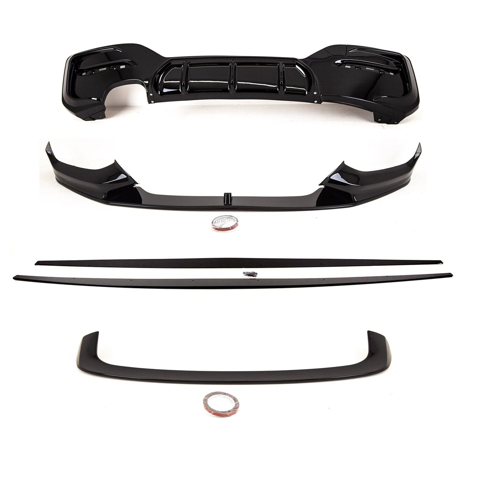 - Package includes- 1 x Front Splitter, 1 x Rear Diffuser, 1 x Pair Side Skirts (L+R), 1 x Boot Spoiler, 1 x Canards