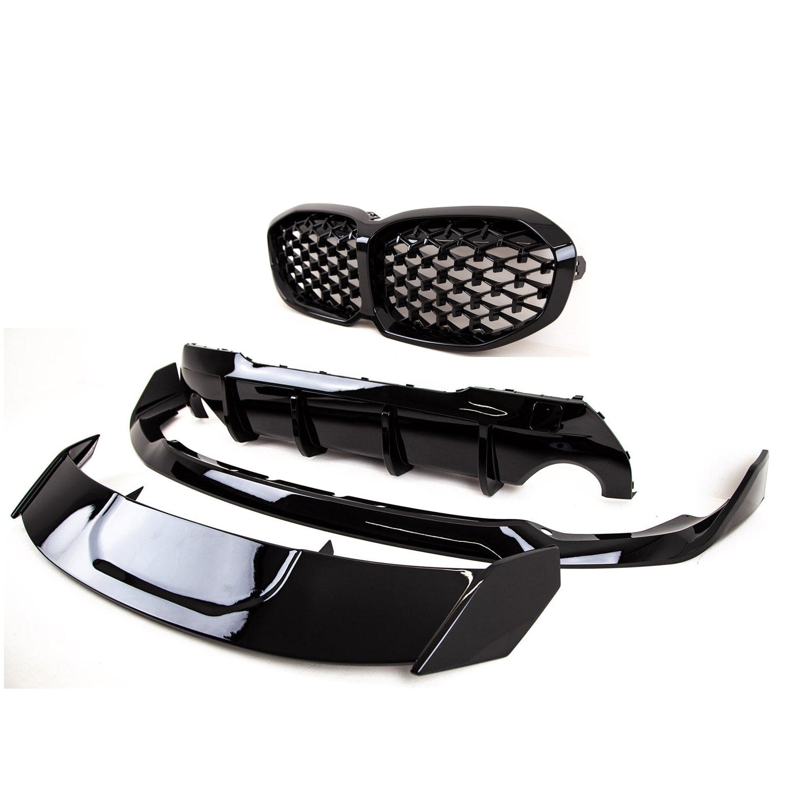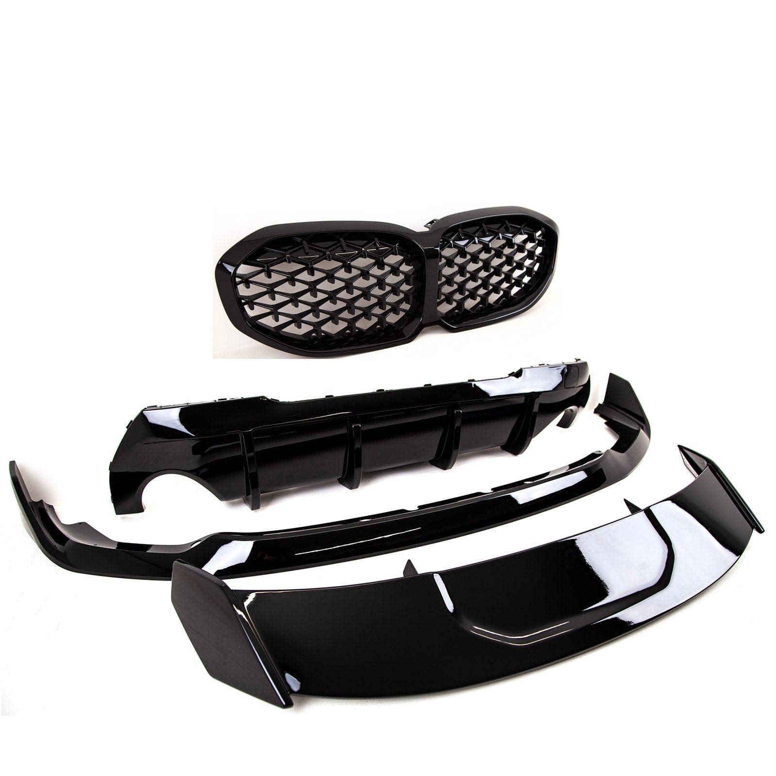- Package includes- 1 x Front Splitter, 1 x Rear Diffuser Dual Exhaust, 1 x Pair Aero Canards, 1 x Roof Spoiler, 1 x Pair Kidney Grilles