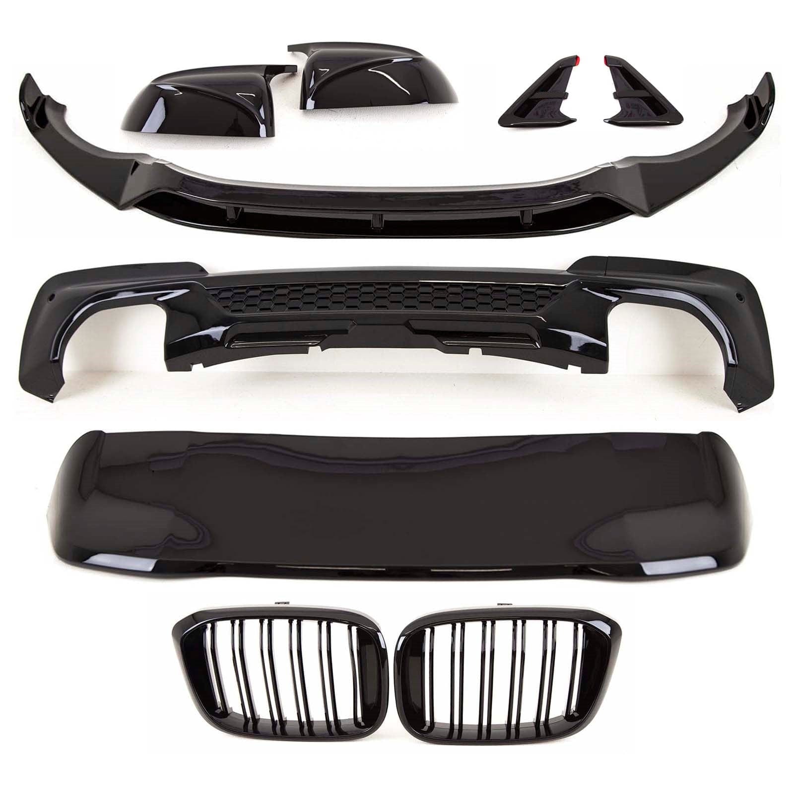- Package includes- 1 x Front Splitter, 1 x Pair Side Skirts, 1 x Rear Diffuser Quad Exhaust, 1 x Pair Kidney Grilles, 1 x Pair Aero Wings, 1 x Roof Spoiler, 1 x Pair Mirror Covers