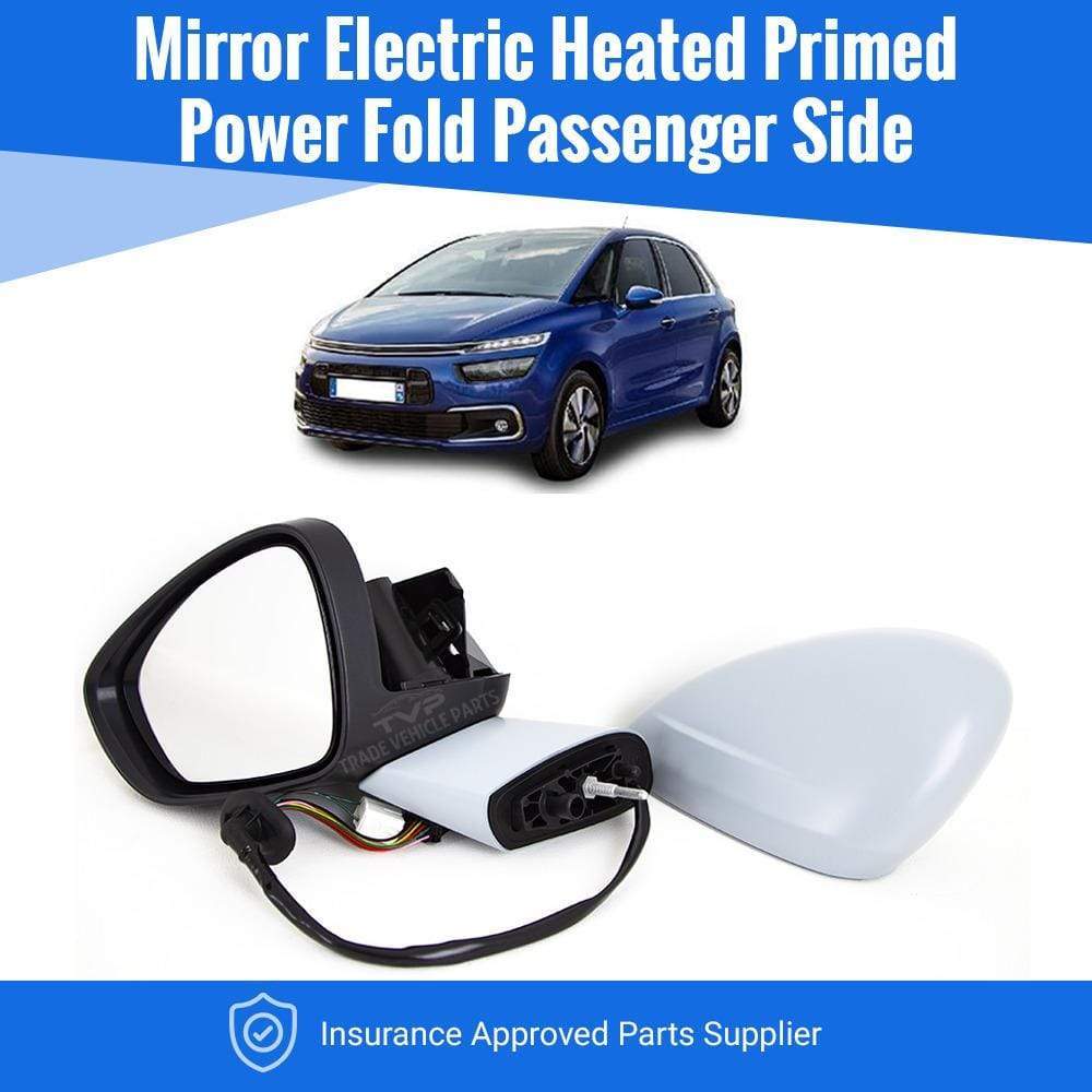 Citroen C4 Picasso 2013- Door Wing Mirror Electric Heated Powerfold Primed Cover W/ Indicator & Foot Light Passenger Side