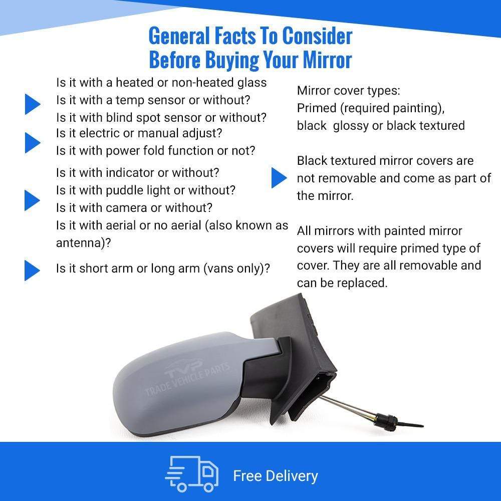 Fits VW Caravelle 2010-2015 Door Wing Mirror Electric Black Driver Side