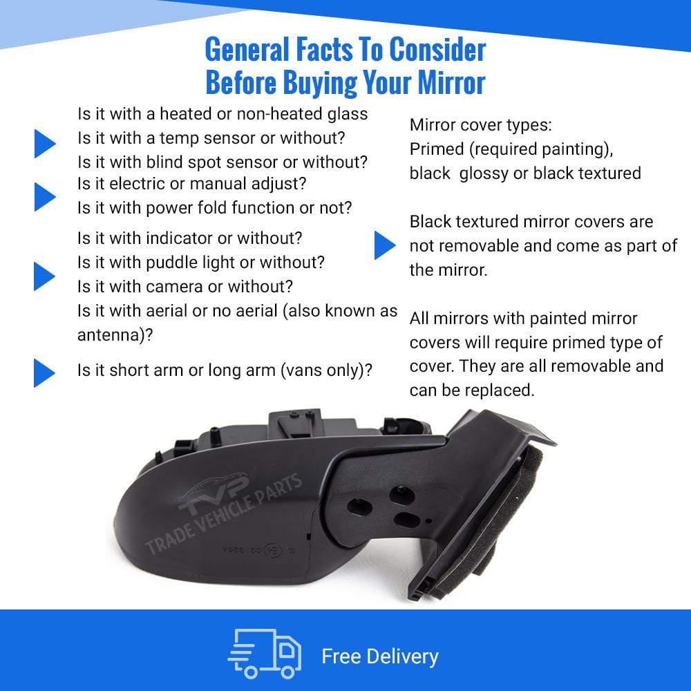 Fits Vauxhall Corsa D 2006- Mirror Heated Electric Primed Black Arm Right