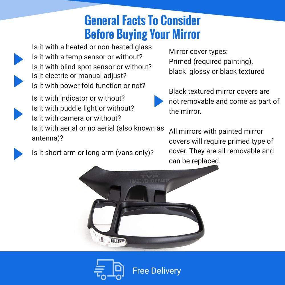 Fits Vauxhall Movano 2010-2017 Door Mirror Manual Black With Indicator Driver Side