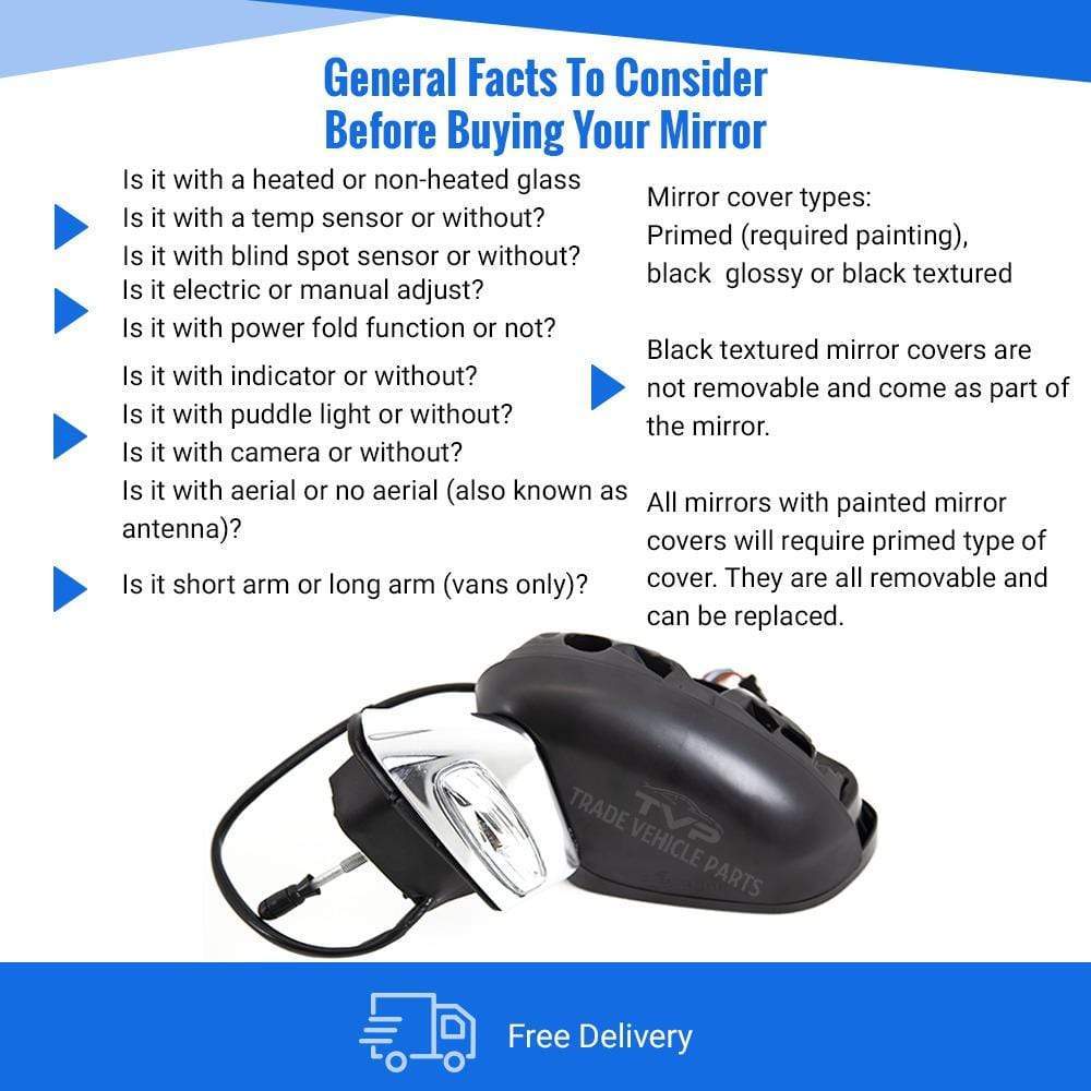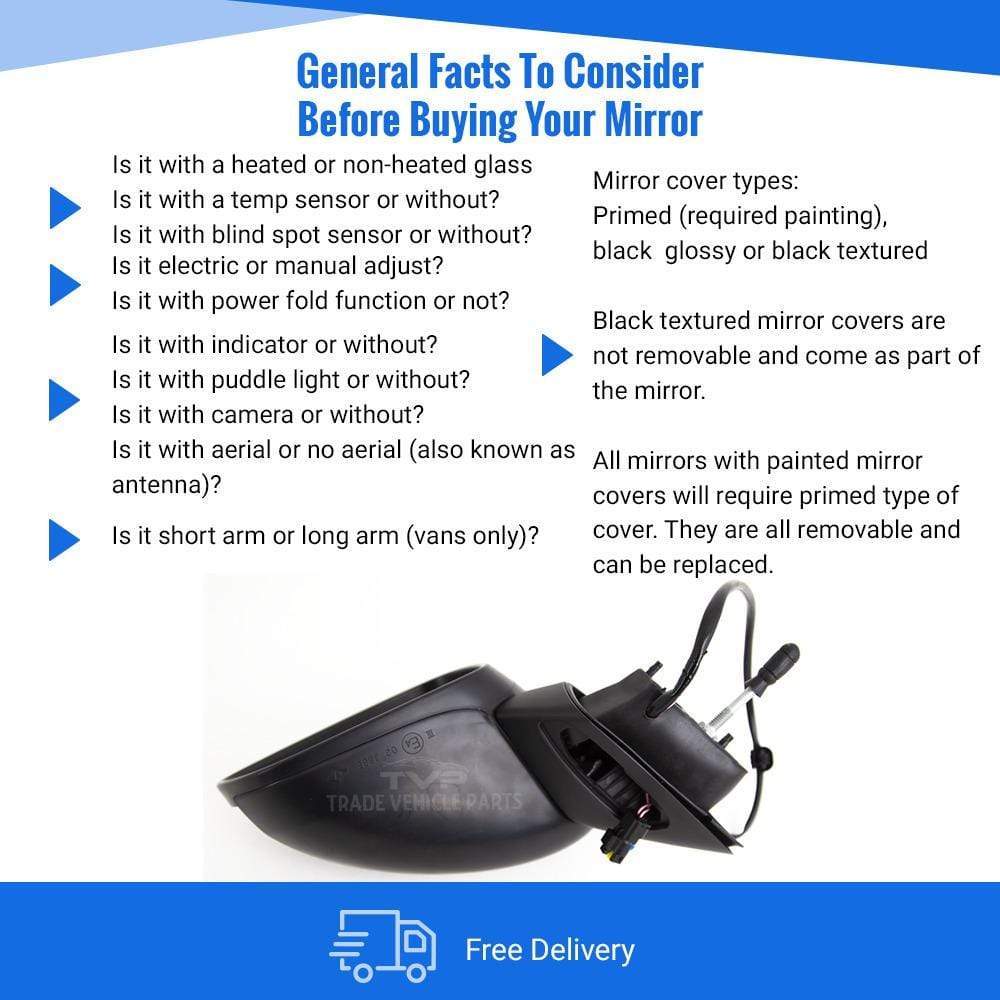 Fits Citroen C3 2010-2016 Door Wing Mirror Heated Electric Primed W/Ind Power Fold Chrome Base Passenger Side