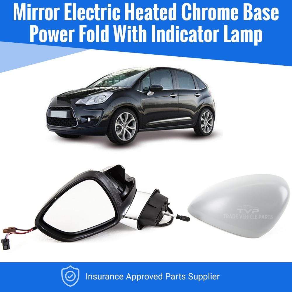 Citroen C3 2010-2016 Door Wing Mirror Heated Electric Primed W/Ind Power Fold Chrome Base Passenger Side
