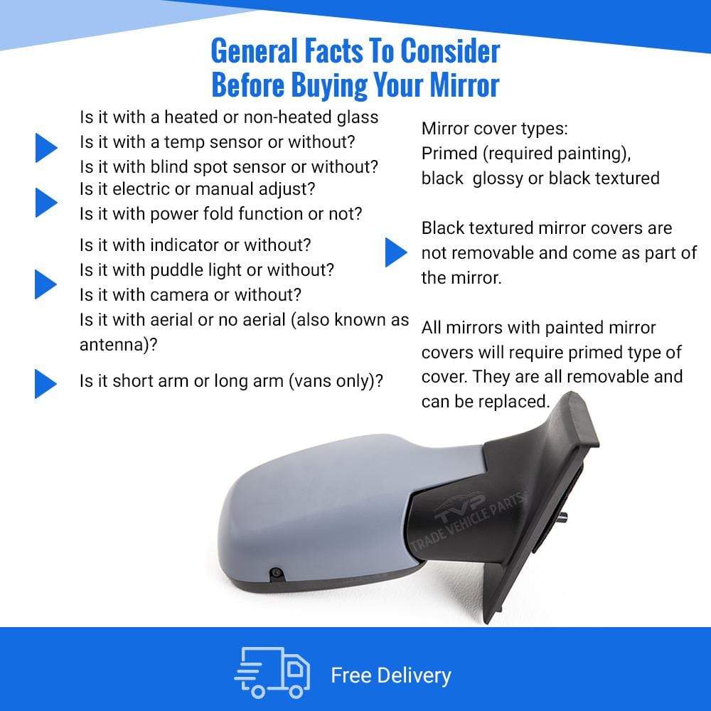 Fits Nissan Primastar 2002-2014 Door Wing Mirror Manual Black Passenger Side