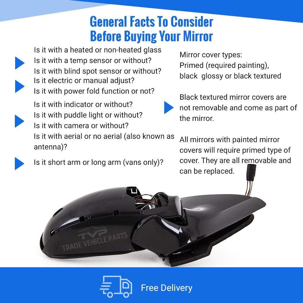 Fits VW Golf Mk5 2004-2008 Door Wing Mirror Electric Heated With Indicator Primed Passenger Side