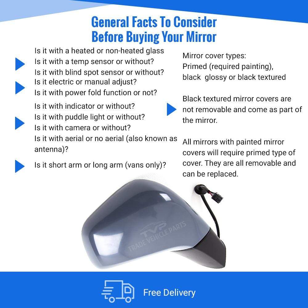 Vauxhall Mokka 2012-2016 Door Wing Mirror Electric Heated Primed Driver Side