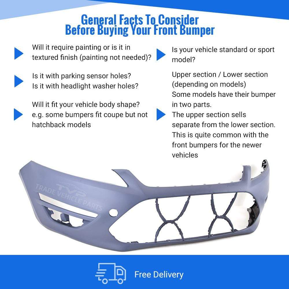 Fits Ford Mondeo 2011-2014 Front Bumper Primed No Wash Jet Or Sensor Holes