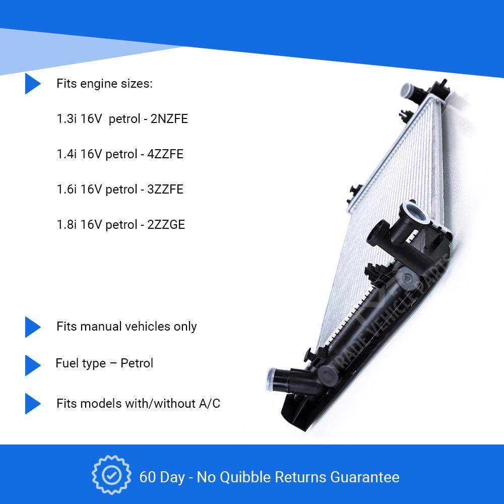 Toyota Corolla 2000-2007 Radiator (1.3I 16V 1.4I 16V 1.6I 16V 1.8I 16V) (Petrol) ( Manual) (With/Without Ac)
