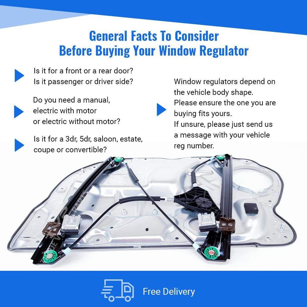 VW Polo 2000-2009 Front Electric Window Regulator W/ Panel W/O Motor Passenger Side