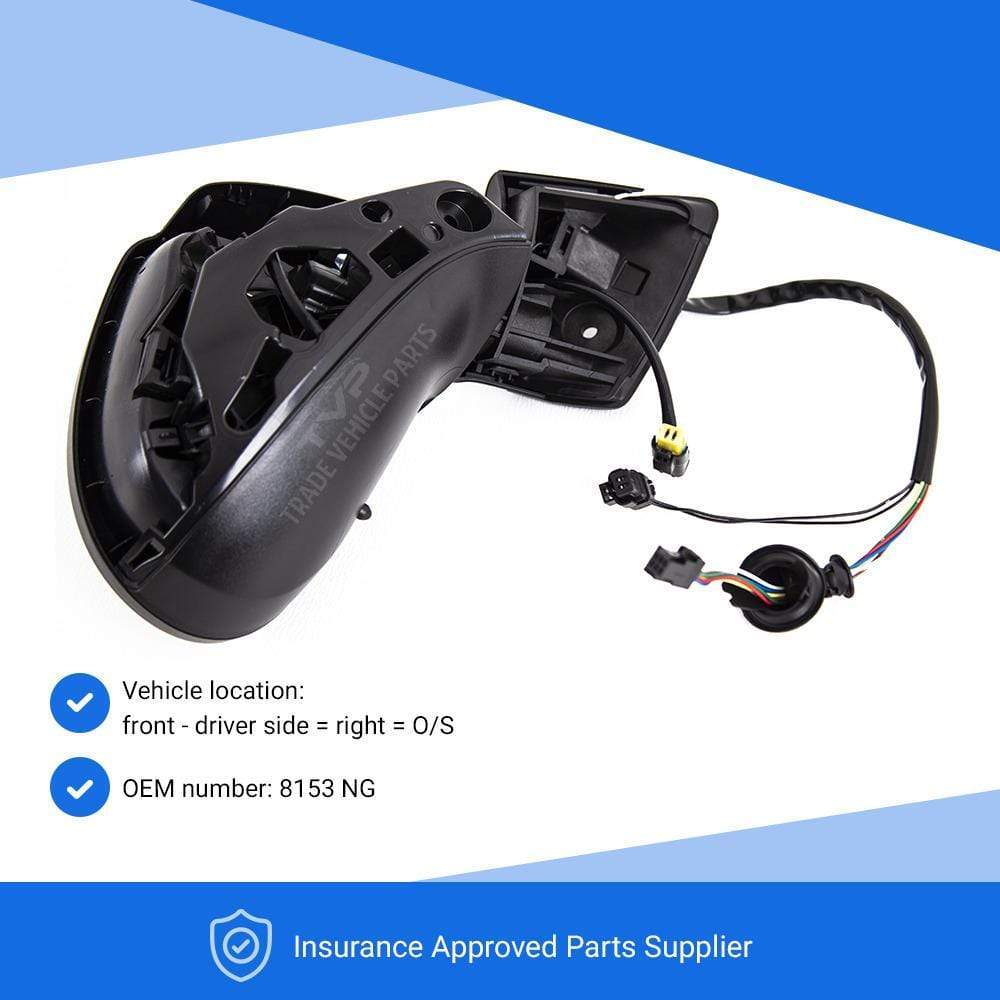 Peugeot 308 2007-2014 Door Wing Mirror Heated Electric Primed-Gray W/Ind Driver Side