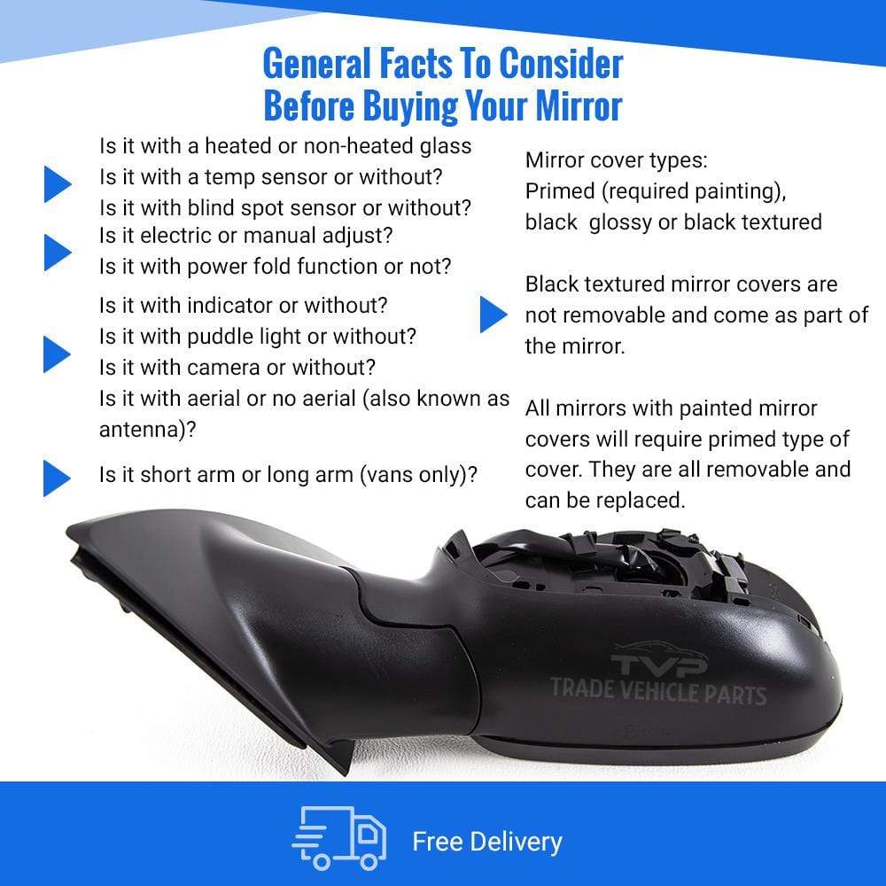 Fits Vauxhall Meriva 2010-2017 Door Wing Mirror Electric Heated Full Primed 5 Pins Passenger Side