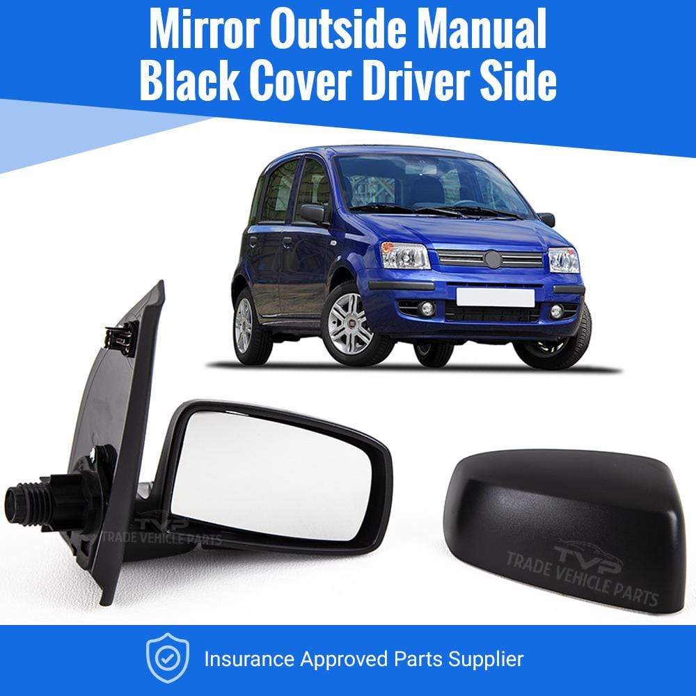 Fits Fiat Panda 2004-2011 Door Wing Mirror Manual Black Cover Driver Side