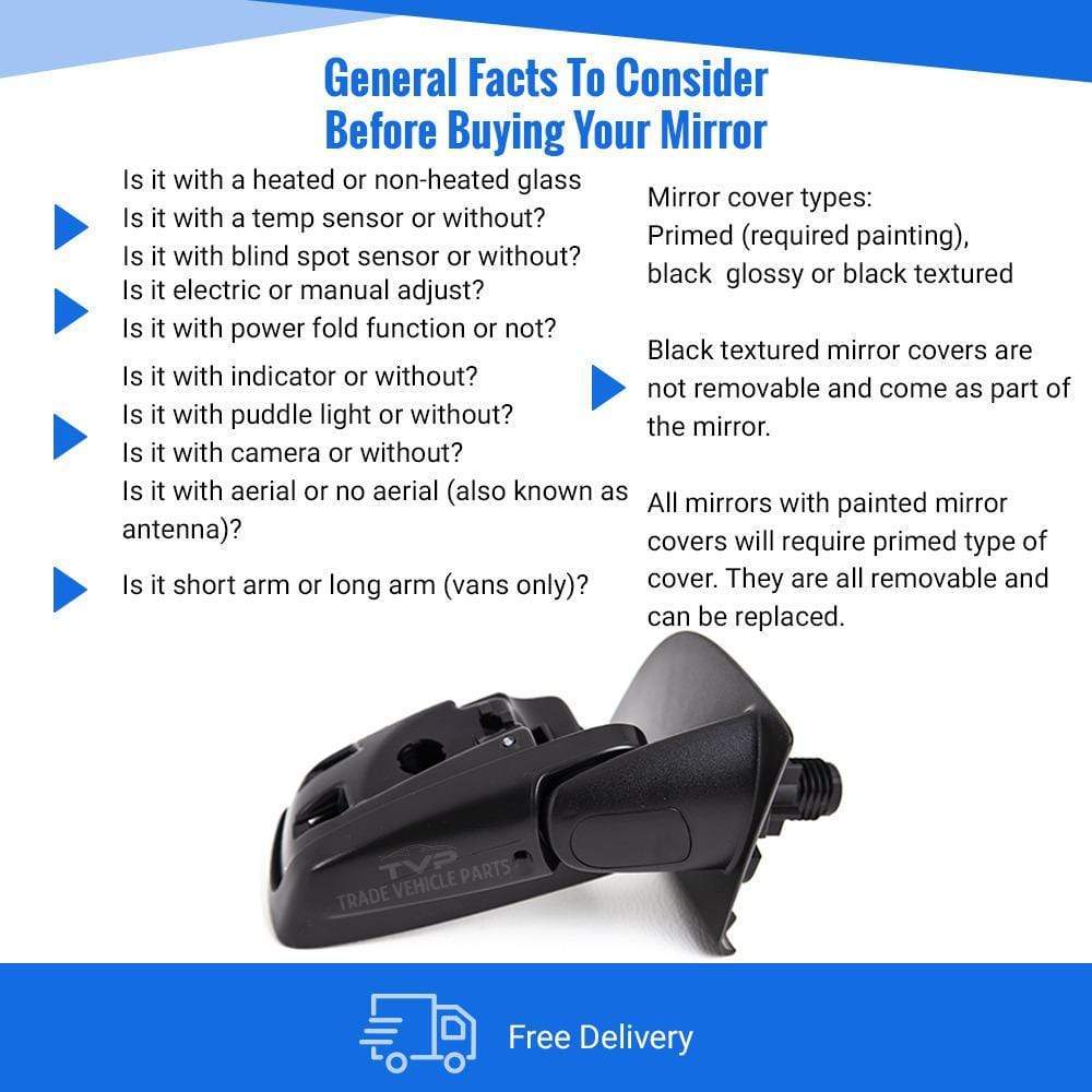 Fits Fiat Punto 2012- Door Wing Mirror Cover Black Driver Side Right