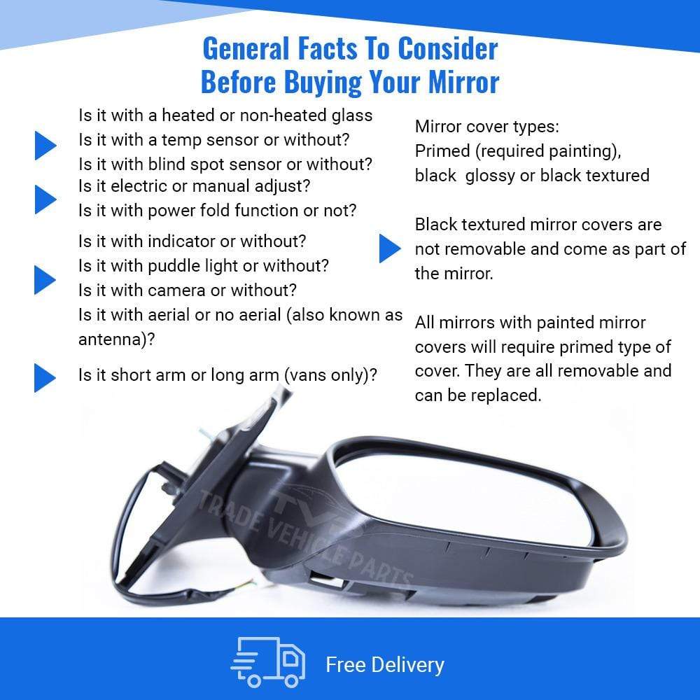 Fits Toyota Yaris 2006-2011 Door Wing Mirror Electric Primed-Black Passenger Side Not Verso