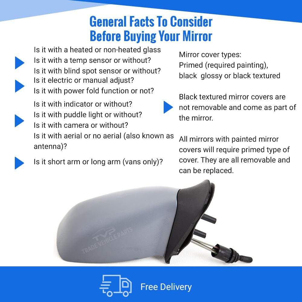 Fits Ford Fiesta Mk4 1996-1999 Door Wing Mirror Manual Primed Driver Side