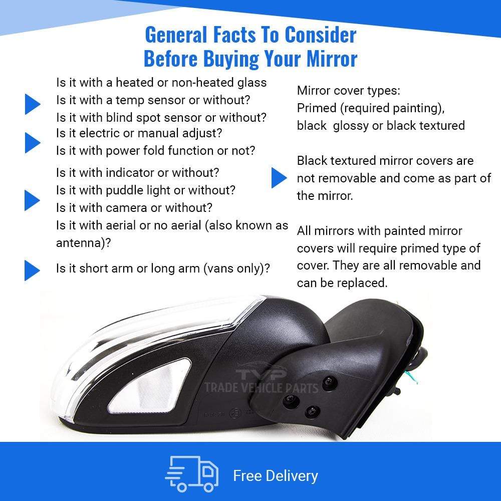 Fits Peugeot Expert 2007-2016 Door Wing Mirror E/H Twin Glass Primed Passenger Side