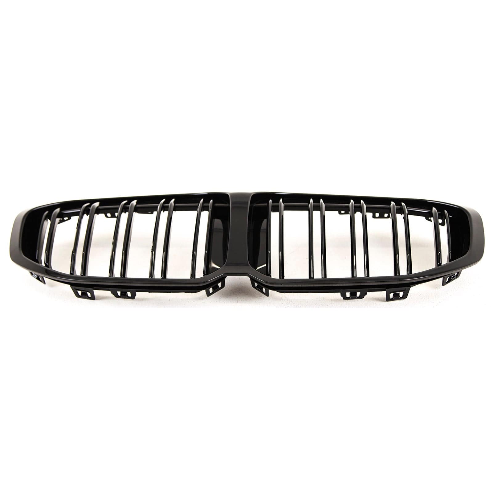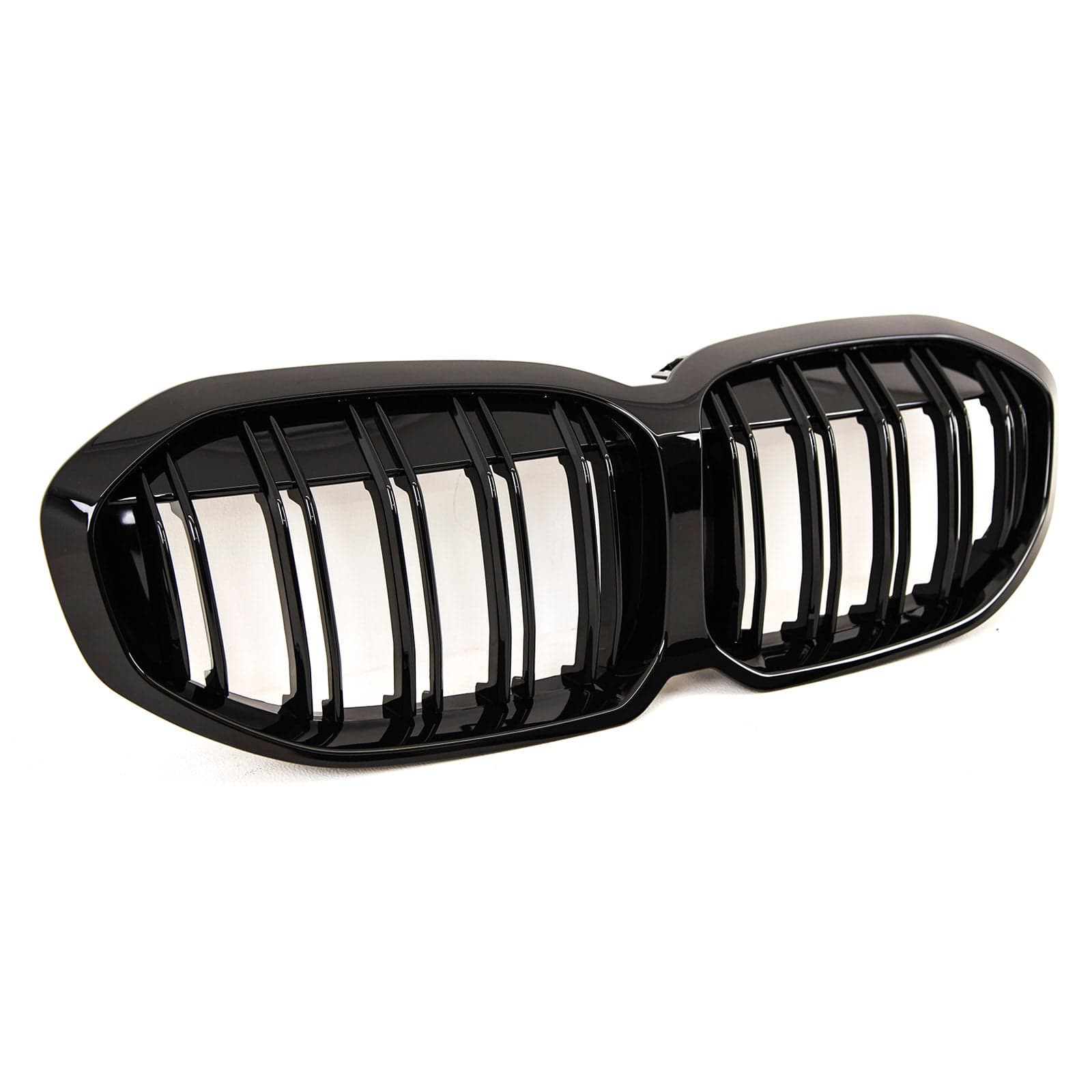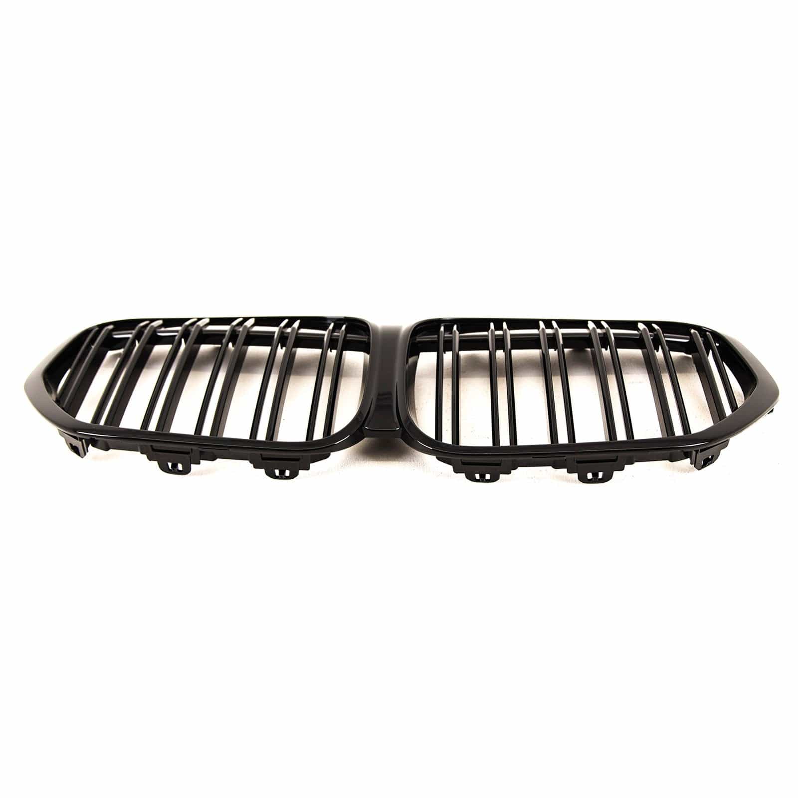 Fits BMW 1 Series F40 2019- Front Kidney Grilles Twin Double Slats Gloss Black